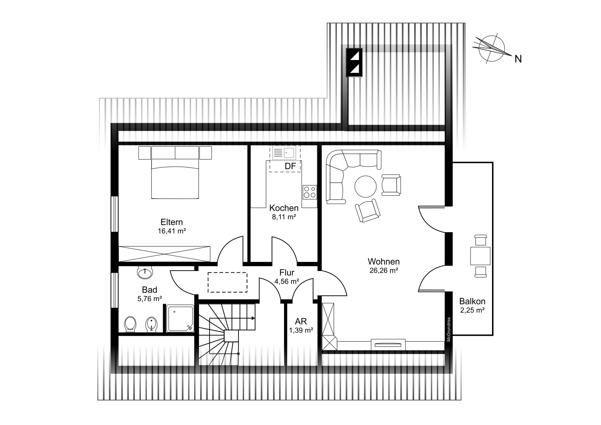 - Energieverbrauchskennwert: 105,30 kWh/(m²*a)