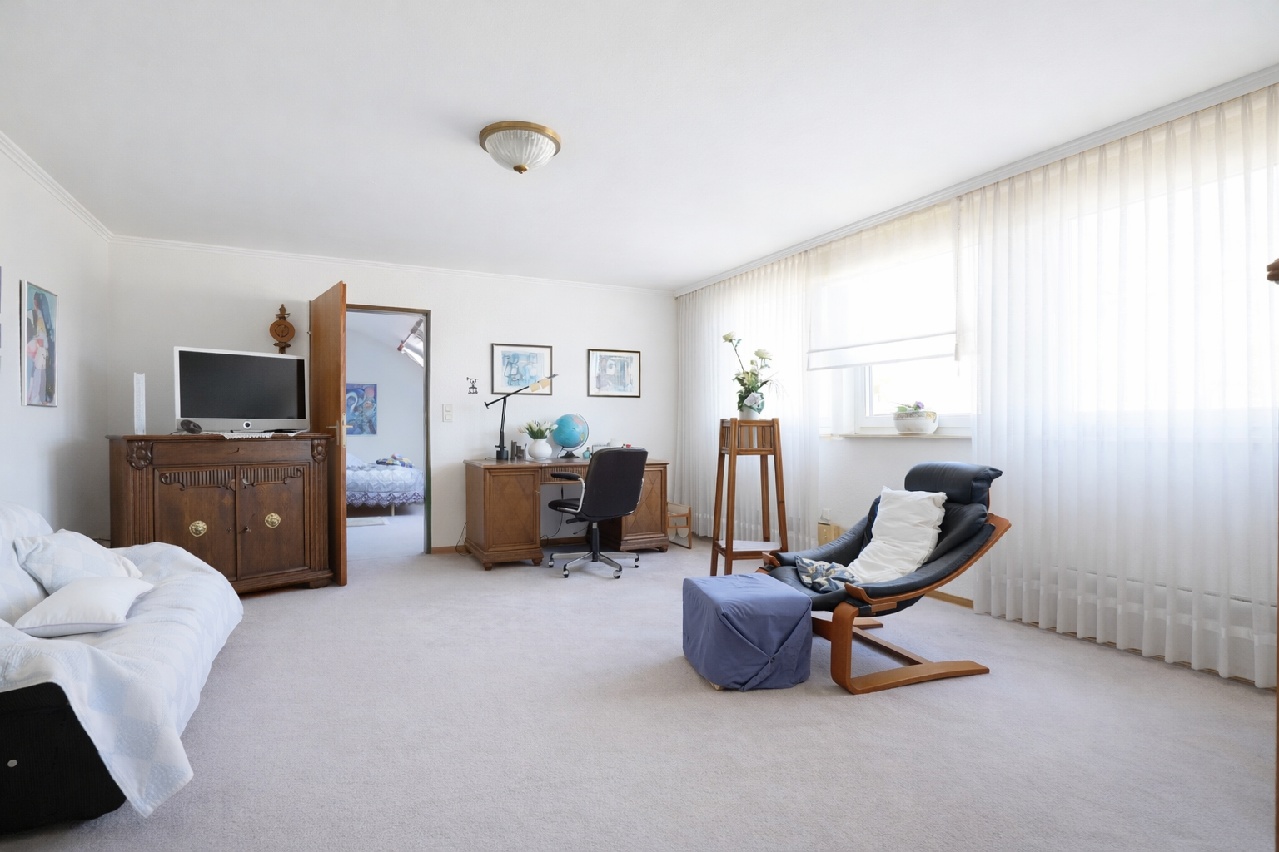 Vom Hausflur aus gelangt man in das Dachgeschoss. Hier wurden die zur Straße liegenden, ehemaligen Bodenräume durch eine Nutzungsänderung zu Wohnraum umgebaut. Zwei Wohn- oder Schlafräume, ein TL-Bad und eine kleine Kochecke sind ein Paradies für Kinder oder andere Familienmitglieder. Die beiden zum Garten liegenden Bodenräume wurden ebenfalls ausgebaut und mit einer Gaube, Fenster, Heizung, Wandverkleidung und Bodenbelägen ausgestattet. Bestens geeignet für Hobby und Freizeit.
