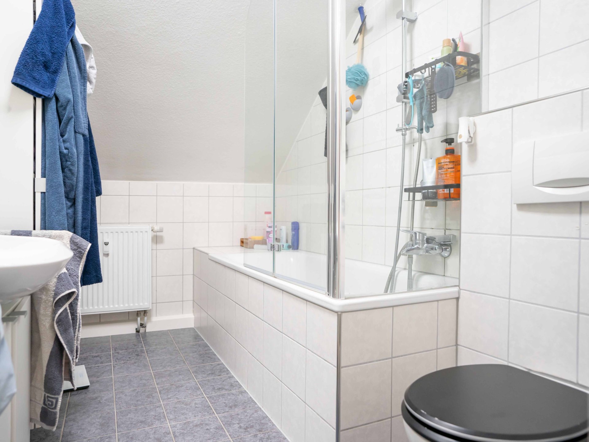 Die Böden sind mit einem modernen Laminat versehen, die Küche ist zeitlos gefliest. Das Bad ist mit einer Duschbadewanne ausgestattet und ebenfalls hell gefliest.