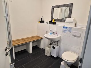 bestehend aus einem großen Behandlungsraum, Nebenraum/Aufenthaltsraum, Personaltoilette, Sanitär/Dusche