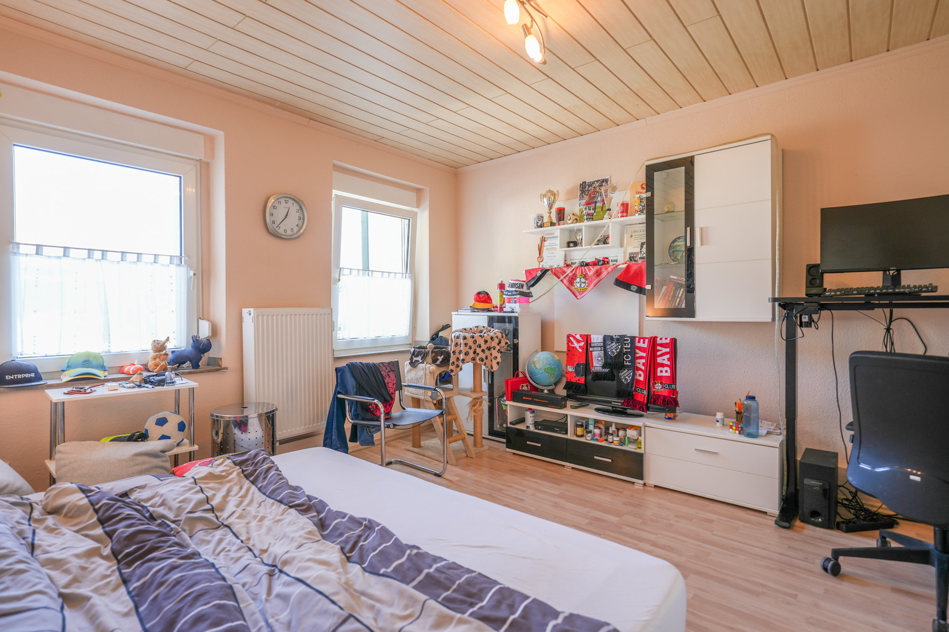 Wohnzimmer sowie ein Kinderzimmer – offen, gemütlich, familienfreundlichDachgeschoss (zusätzliche 33m² Nutzfläche nicht in Wohnfläche enthalten):