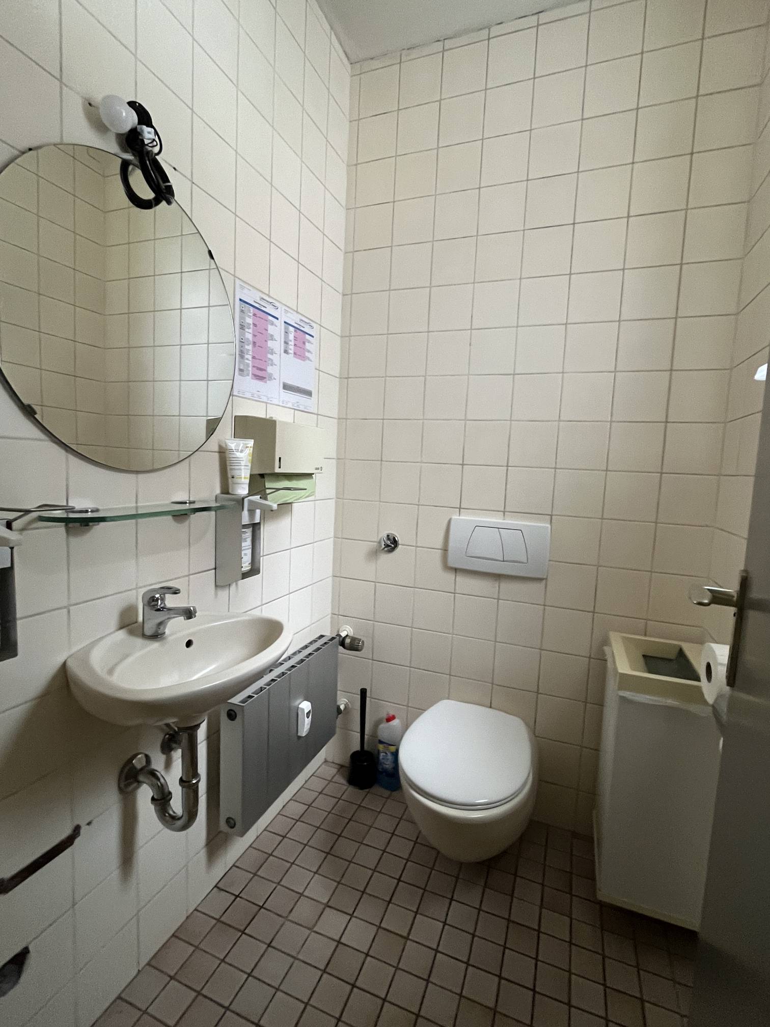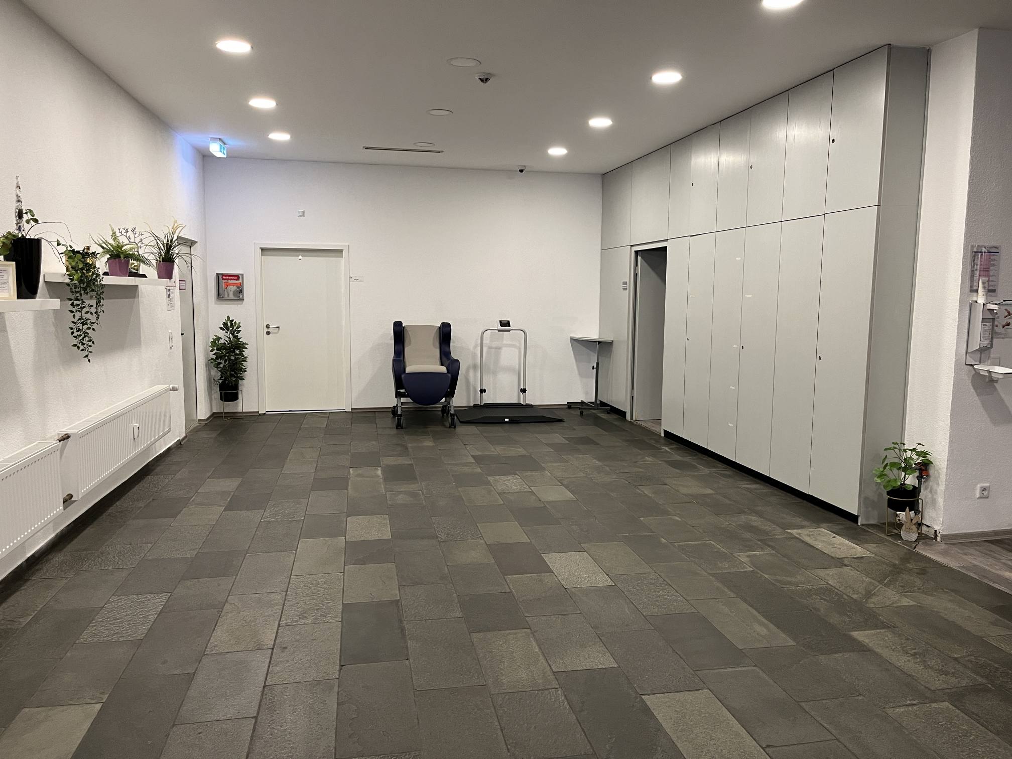 • Das Gebäude wurde seinerzeit sehr aufwändig, solide und repräsentativ errichtet. Besonders die Pflegeeinrichtung im Erdgeschoss präsentiert sich sehr hell und freundlich, besonders großzügig sind hier die gemeinschaftlich genutzten Räumlichkeiten wie der Empfangsbereich und der Aufenthaltsraum ausgefallen. Die insgesamt sieben 1-Bett-Patientenzimmer sind mit neuen, behindertengerechten Bädern (max. 5 Jahre alt) ausgestattet.
