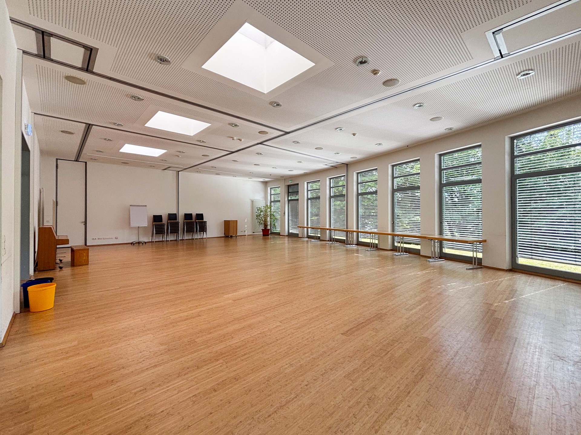 Flexibel nutzbare Konferenzbereiche – hier finden je nach Raumkonfiguration bis zu 150 Personen Platz – 7 Gruppenarbeitsräume, der großzügige Hörsaal, ein Ruhebereich, ein Atelier, ein Werkraum, zwei Speisesäle sowie eine professionell ausgestattete Großküche gehören ebenfalls zum großzügigen Raumangebot. Zur Liegenschaft gehören außerdem 6 Garagen und rund 40 Stellplätze, die ausreichend Parkmöglichkeiten für Teilnehmende, Mitarbeitende und Gäste bieten.