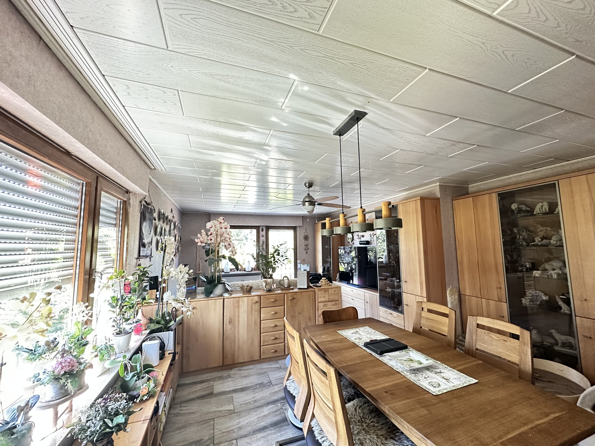 Das Wohnhaus wird mit einer Öl-Zentralheizung (1995) Niedertemperatur beheizt, die Fenster(2009) sind Akustik isolierverglast und mit Rollläden versehen. Als Bodenbelag wurden Laminat und Fliesen (2023)gewählt. Neue Innentüren 2024.