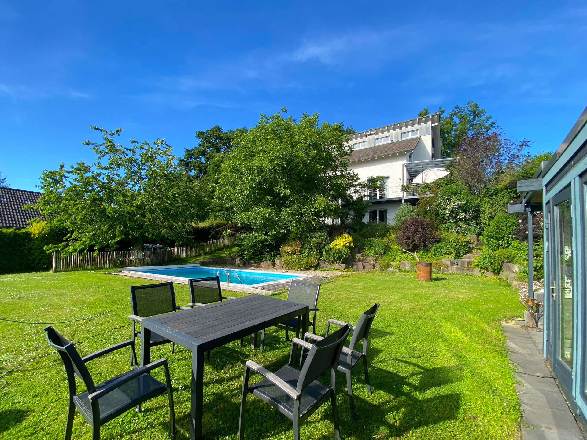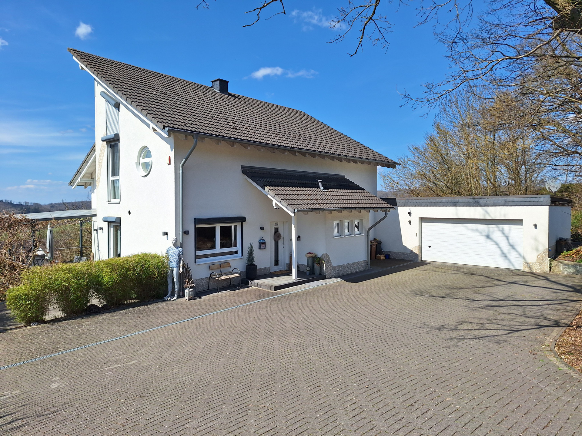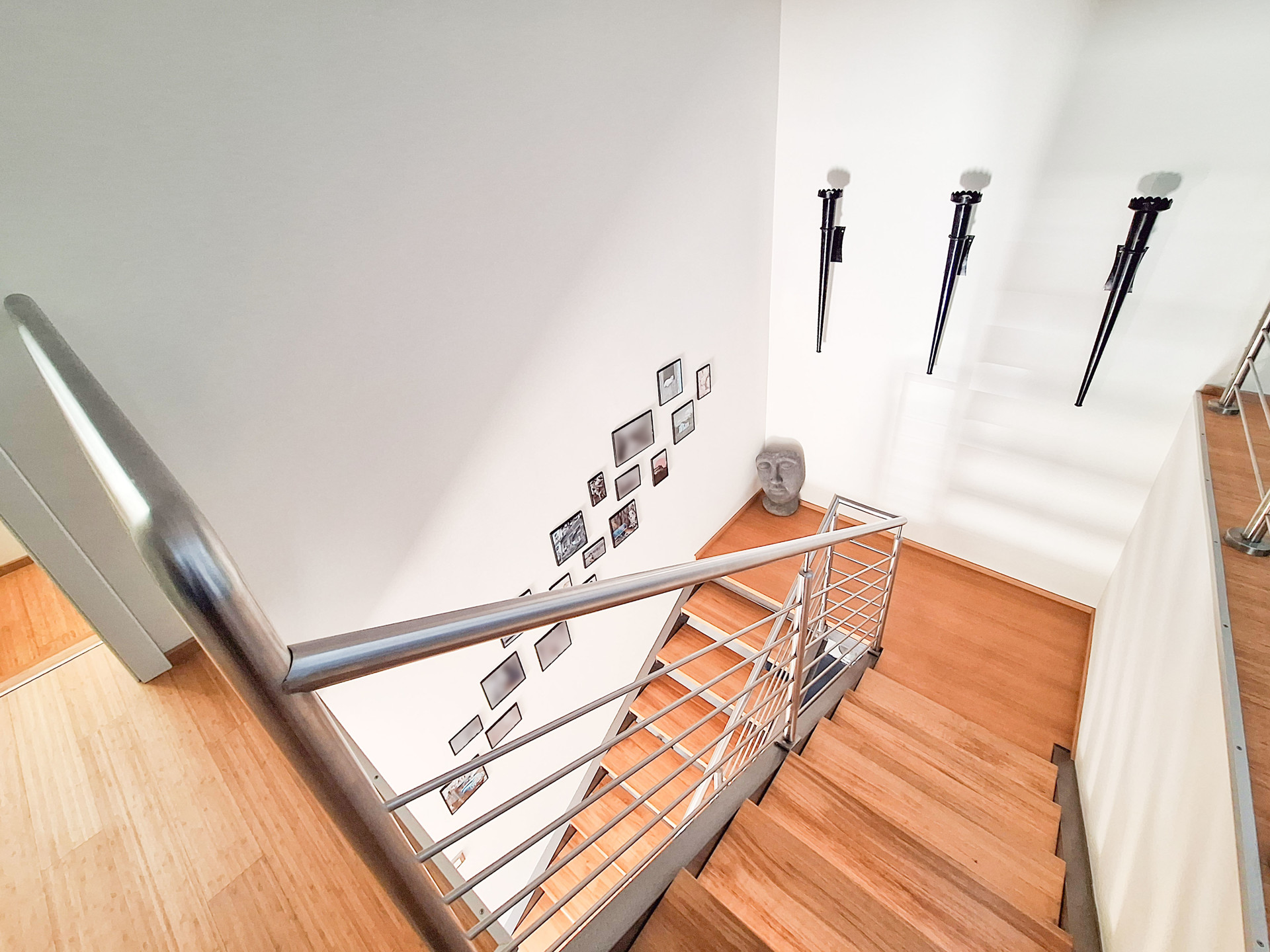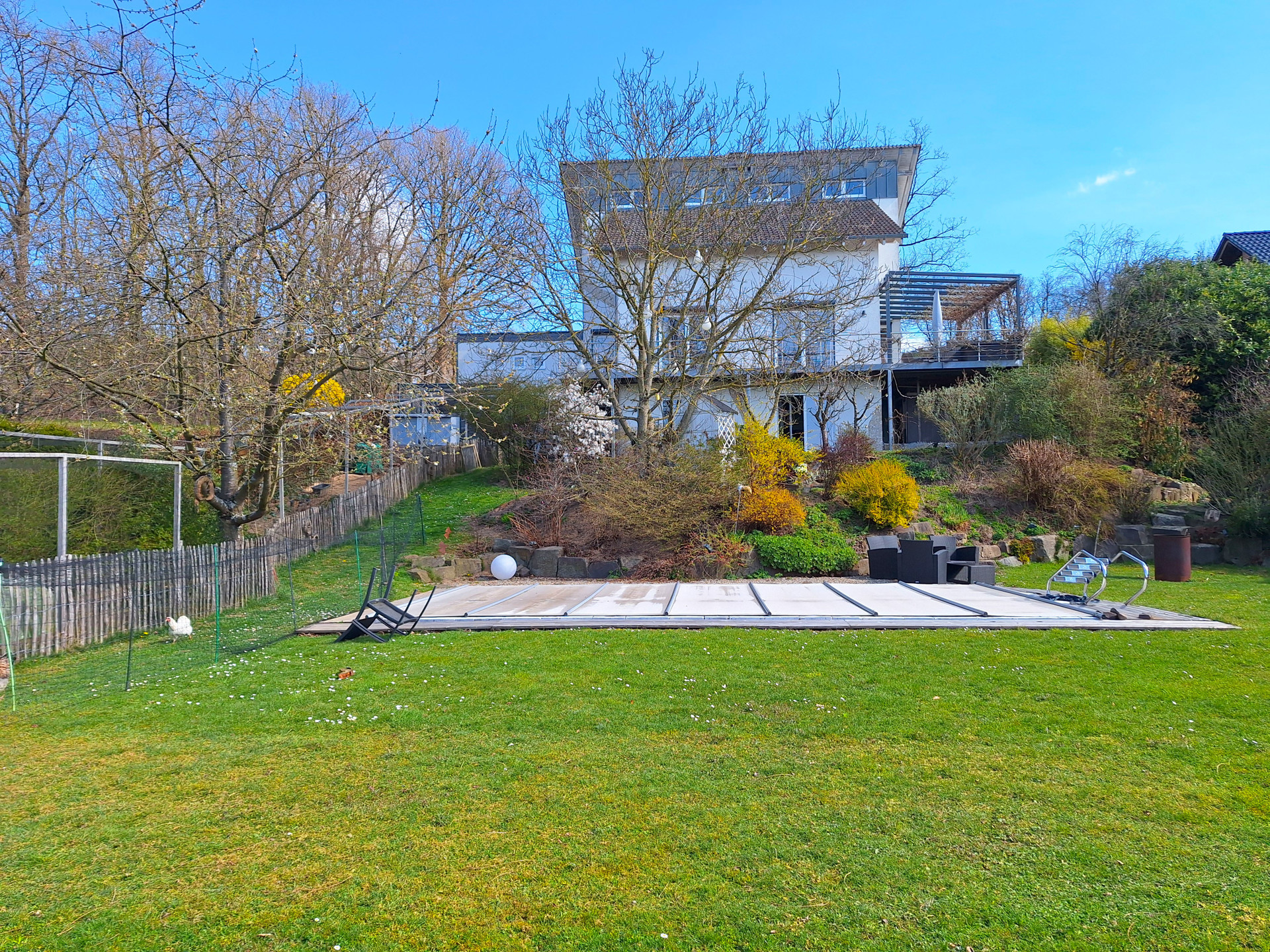 • Dieses hochwertige Einfamilienhaus aus 2004 befindet sich in einer idyllischen Höhenlage und bietet Ihnen eine perfekte Kombination aus moderner Architektur und hochwertigem Wohnkomfort. Die Wohnfläche von ca. 264 m² bietet ausreichend Platz und ist ideal für Familien, die großzügige und lichtdurchflutete Räume schätzen. Die Innenausstattung wurde mit viel Liebe zum Detail modern gestaltet und überzeugt durch hochwertige Materialien sowie eine durchdachte Raumaufteilung. Erst im letzten Jahr wurde eine neue, stilvolle Küche eingebaut, die Wände gestrichen und die Treppenstufen aus Eichenholz sowie der Bambusboden aufbereitet.