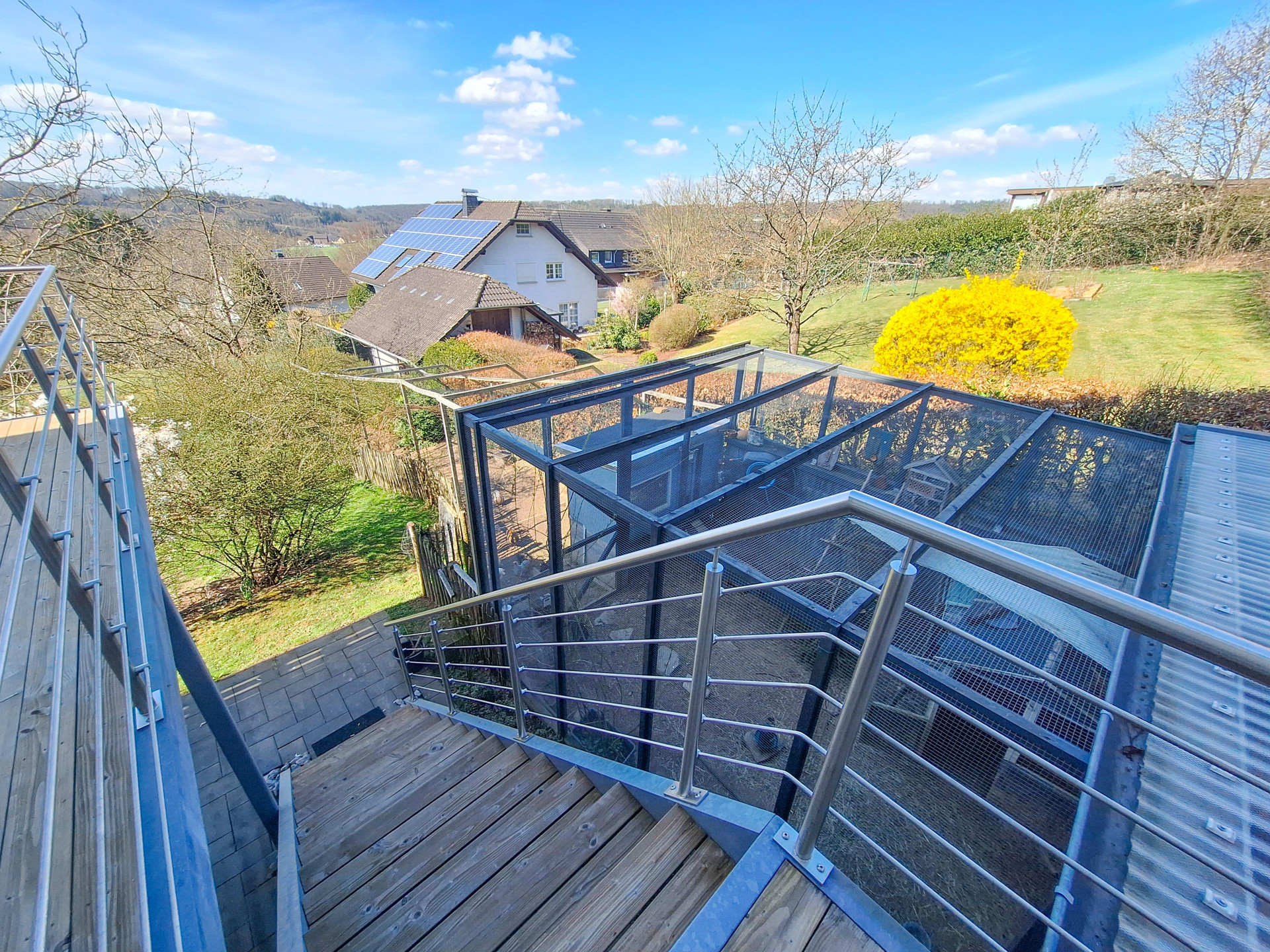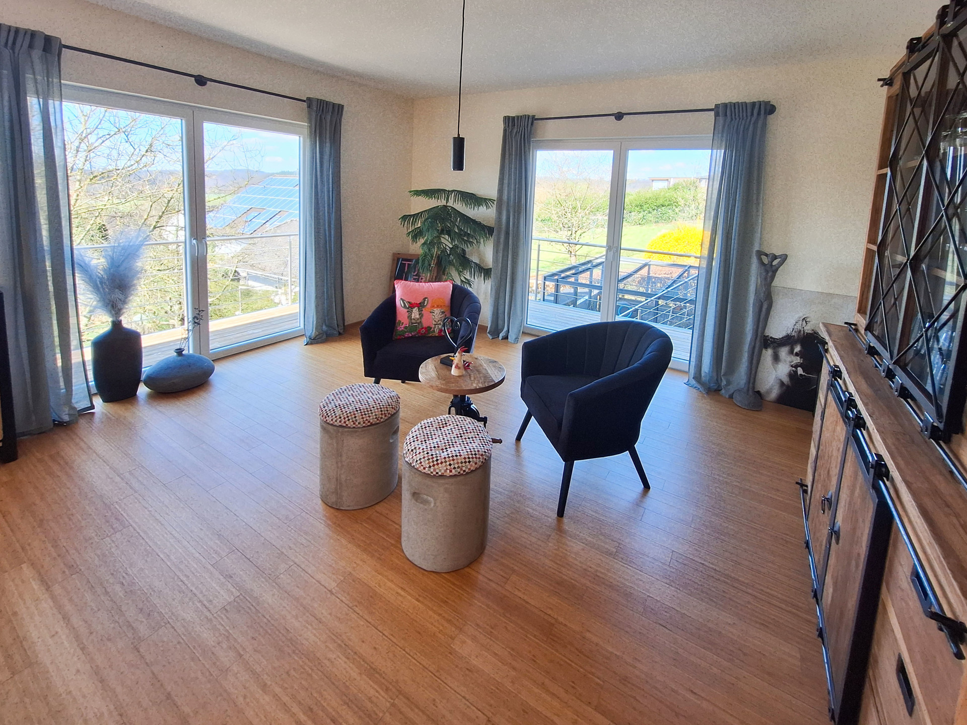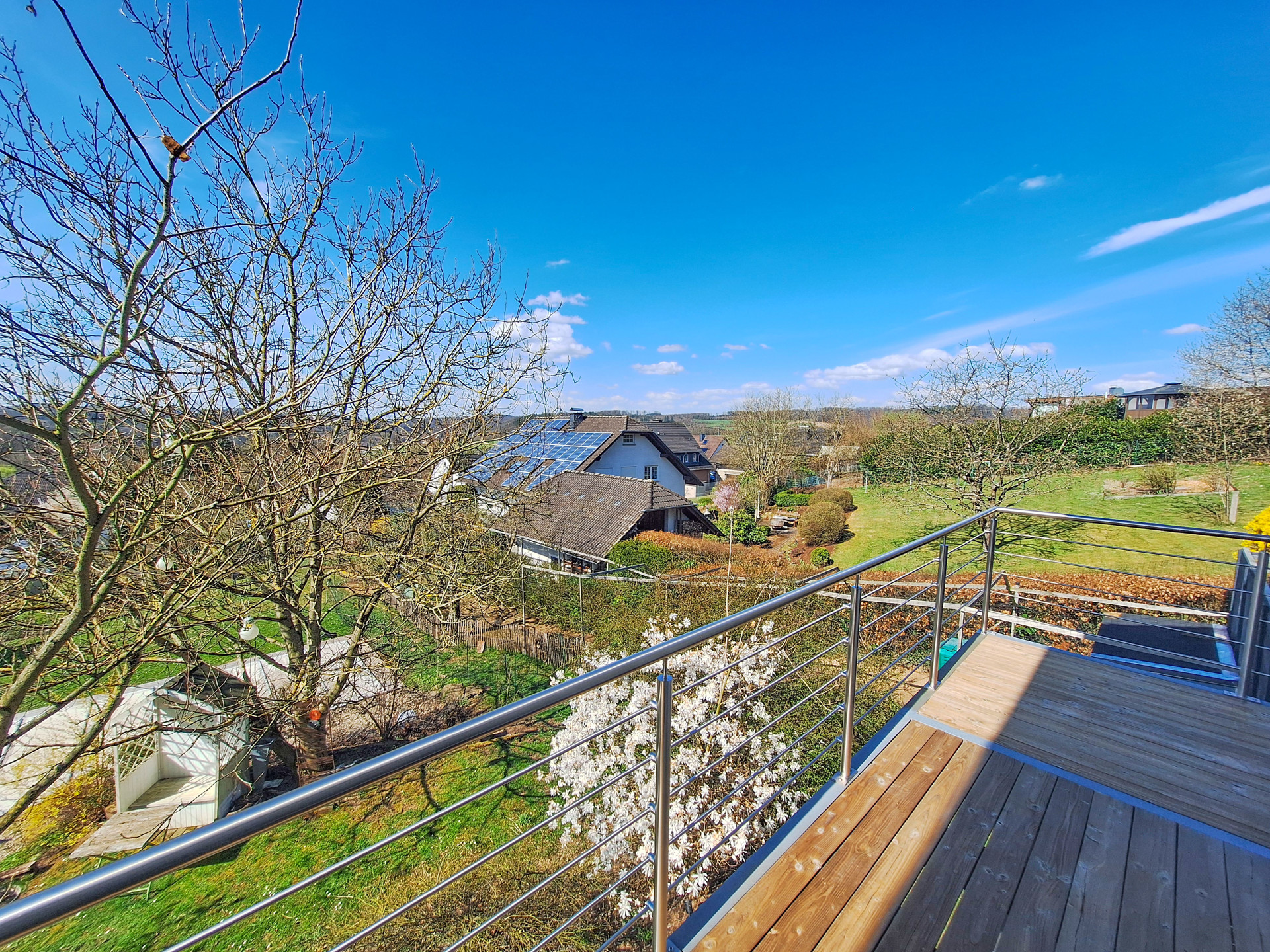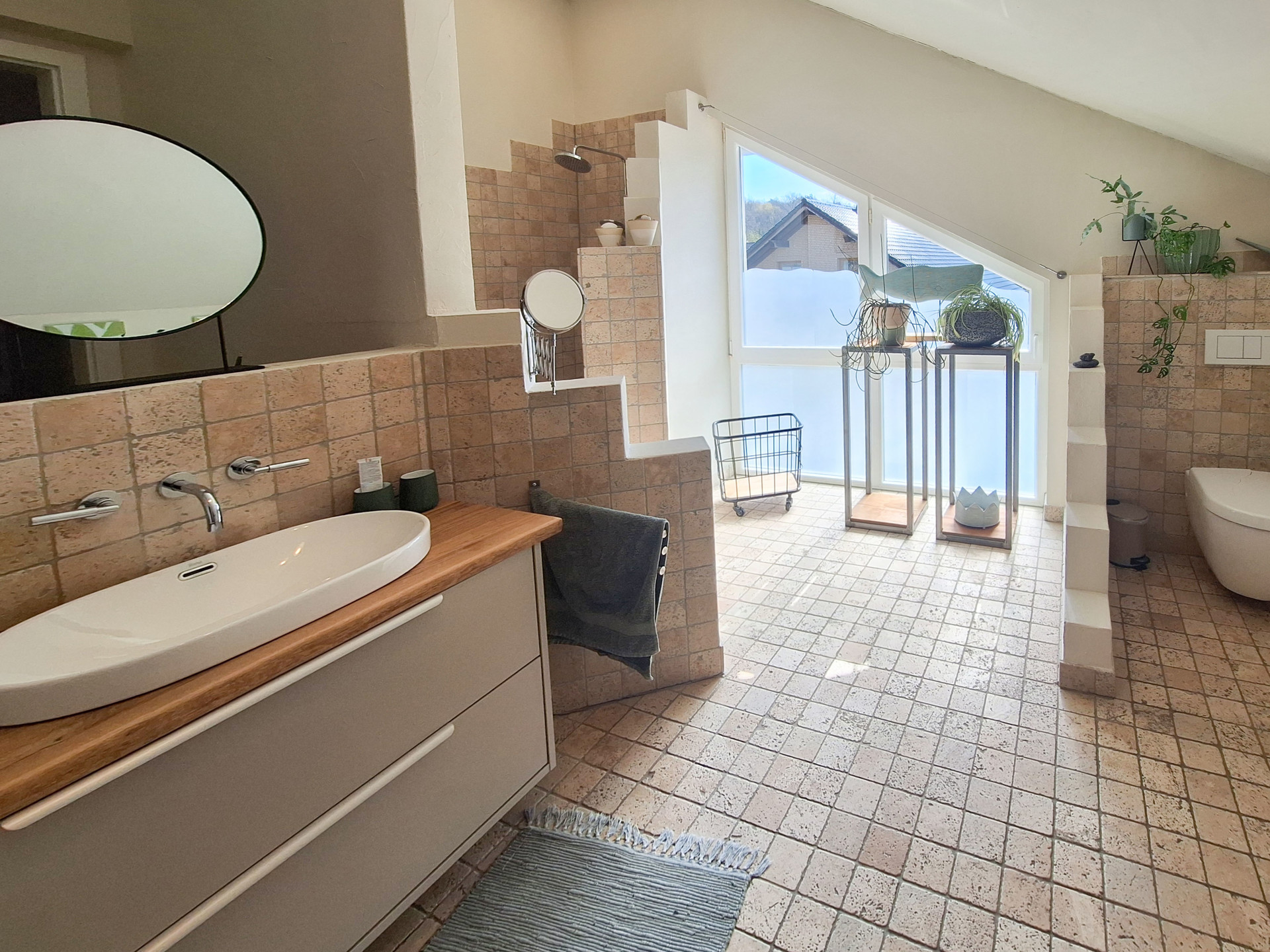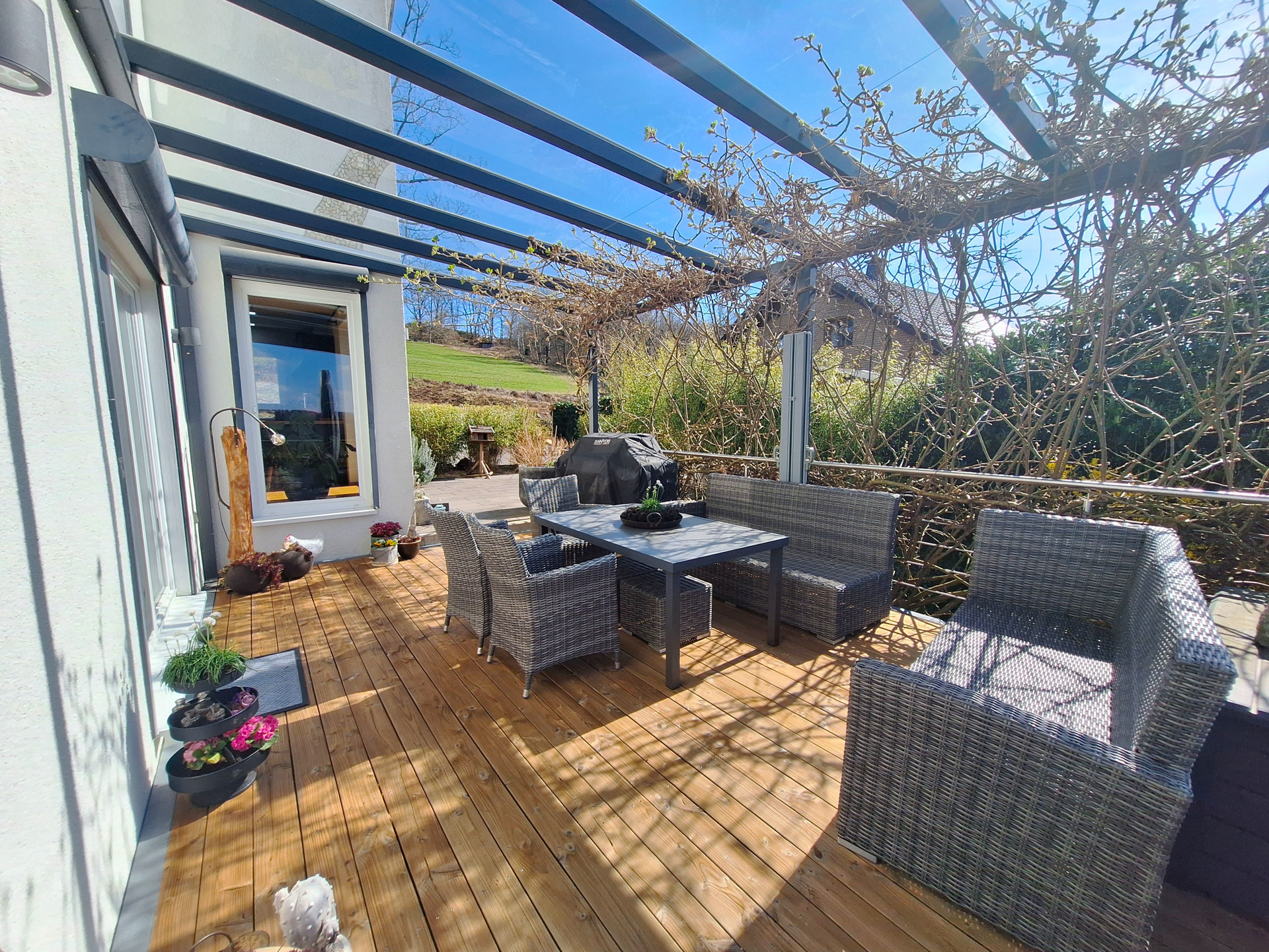• Dieses hochwertige Einfamilienhaus aus 2004 befindet sich in einer idyllischen Höhenlage und bietet Ihnen eine perfekte Kombination aus moderner Architektur und hochwertigem Wohnkomfort. Die Wohnfläche von ca. 264 m² bietet ausreichend Platz und ist ideal für Familien, die großzügige und lichtdurchflutete Räume schätzen. Die Innenausstattung wurde mit viel Liebe zum Detail modern gestaltet und überzeugt durch hochwertige Materialien sowie eine durchdachte Raumaufteilung. Erst im letzten Jahr wurde eine neue, stilvolle Küche eingebaut, die Wände gestrichen und die Treppenstufen aus Eichenholz sowie der Bambusboden aufbereitet.