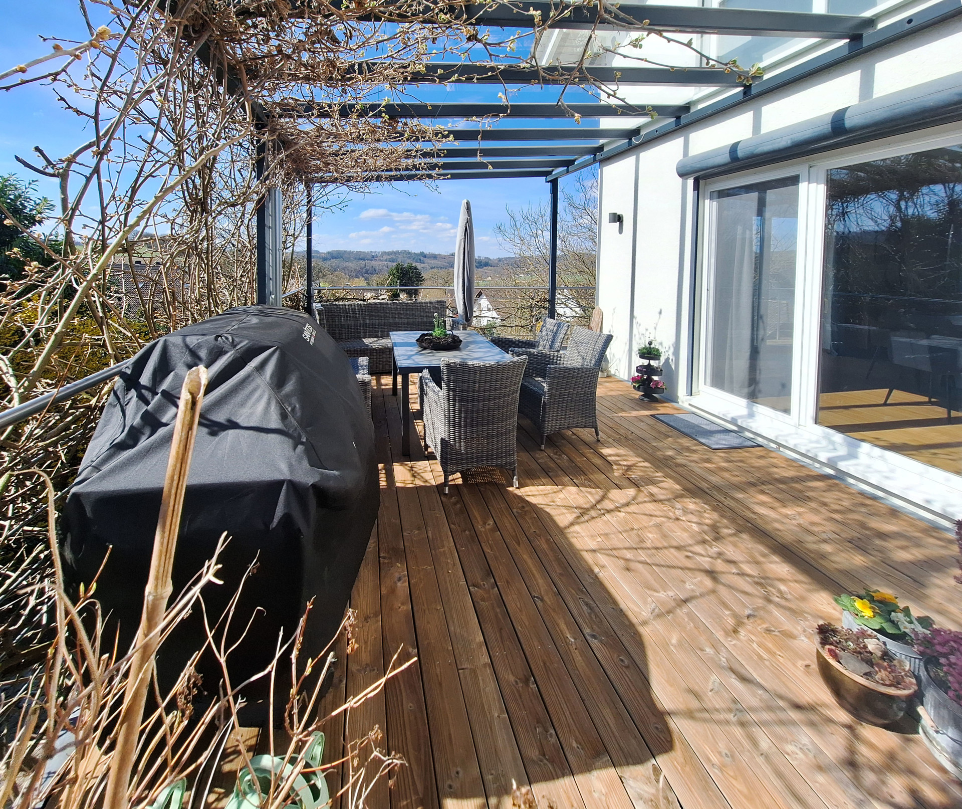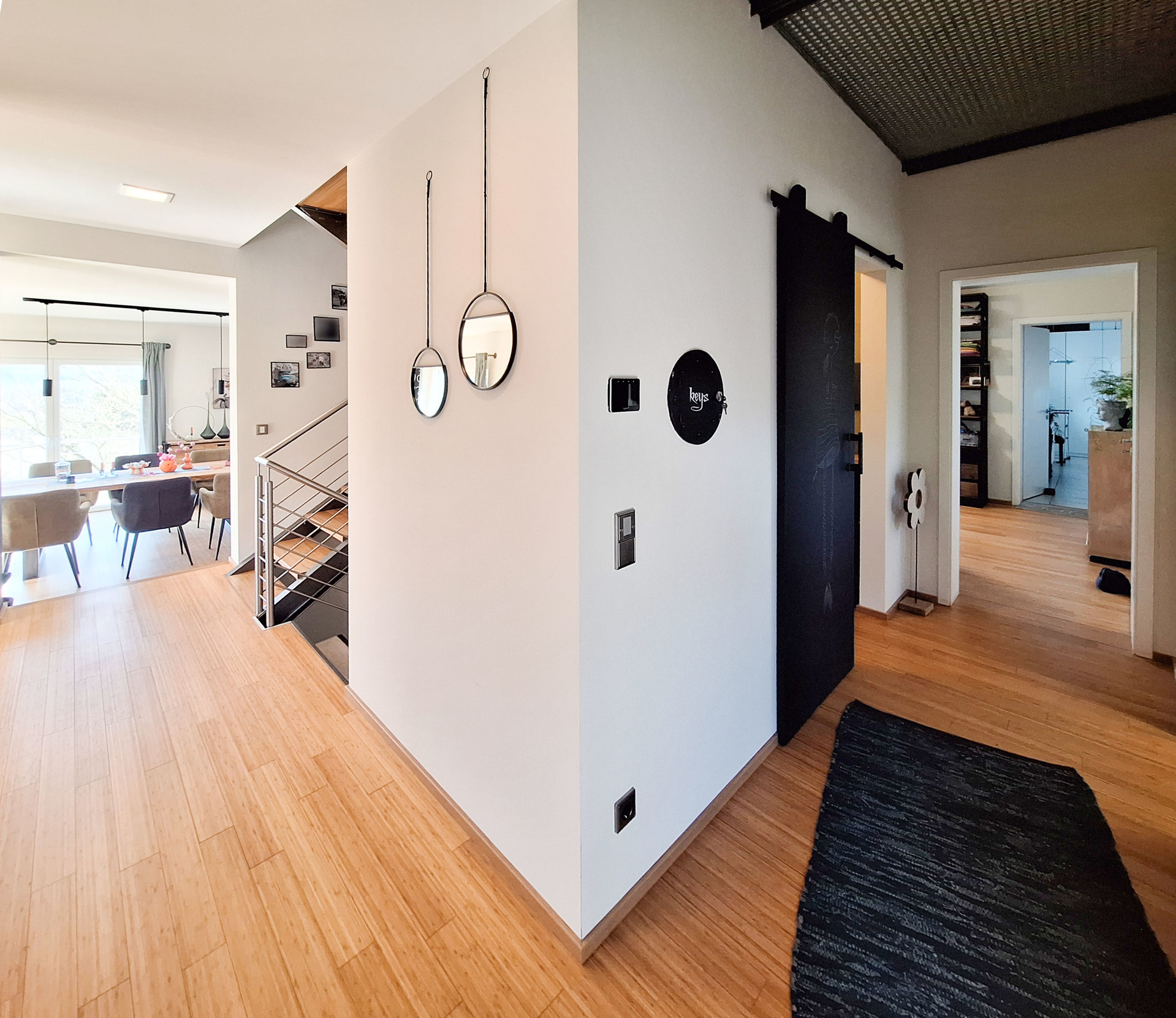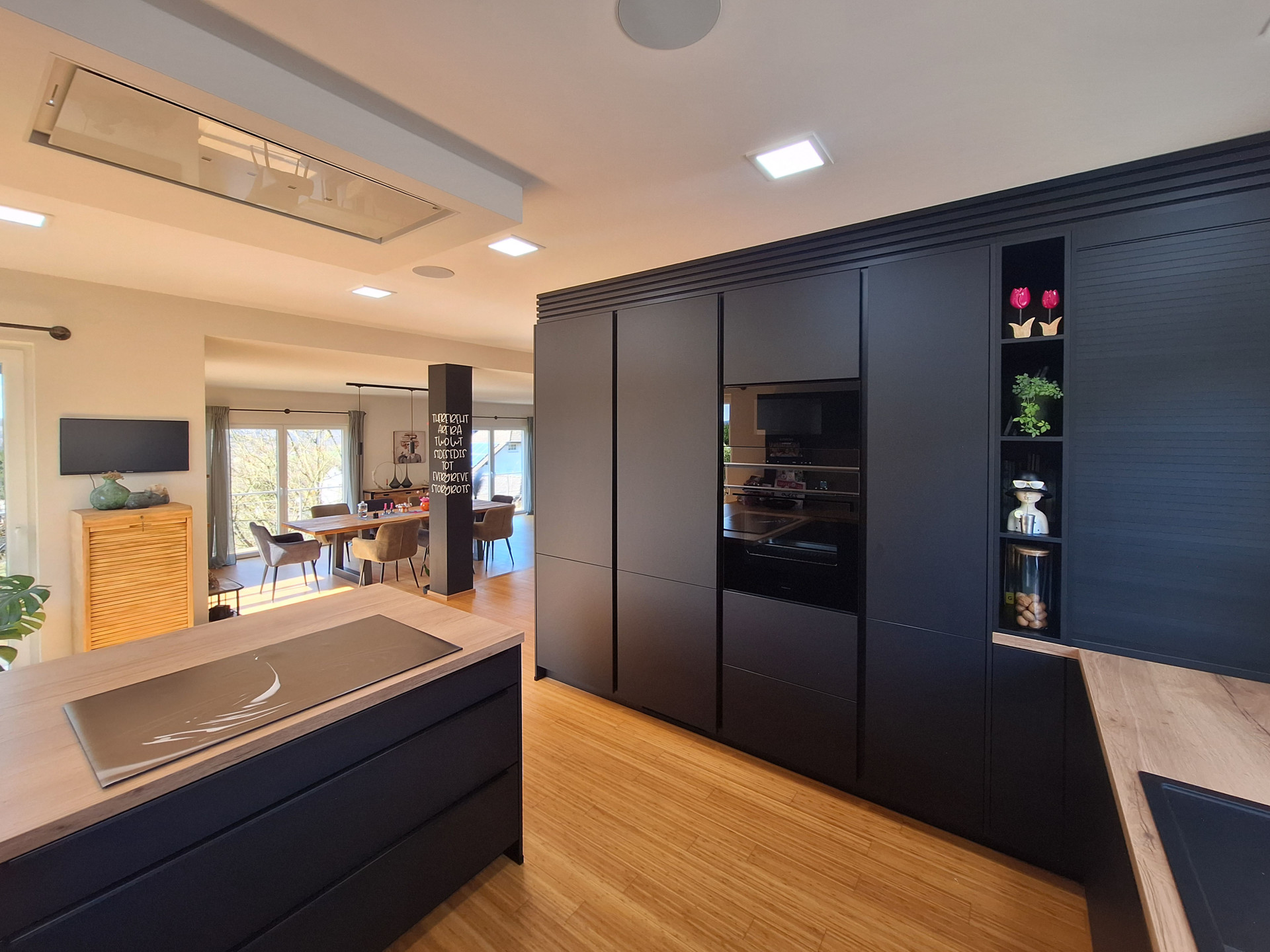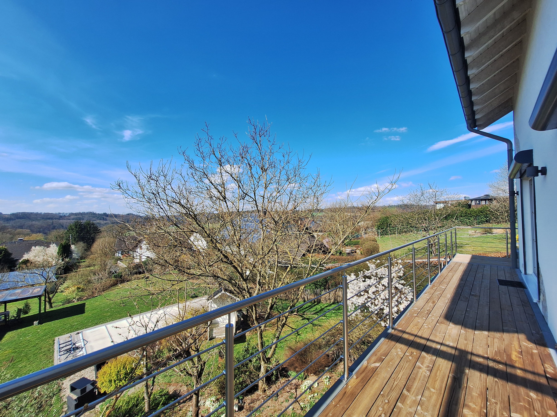 • Dieses hochwertige Einfamilienhaus aus 2004 befindet sich in einer idyllischen Höhenlage und bietet Ihnen eine perfekte Kombination aus moderner Architektur und hochwertigem Wohnkomfort. Die Wohnfläche von ca. 264 m² bietet ausreichend Platz und ist ideal für Familien, die großzügige und lichtdurchflutete Räume schätzen. Die Innenausstattung wurde mit viel Liebe zum Detail modern gestaltet und überzeugt durch hochwertige Materialien sowie eine durchdachte Raumaufteilung. Erst im letzten Jahr wurde eine neue, stilvolle Küche eingebaut, die Wände gestrichen und die Treppenstufen aus Eichenholz sowie der Bambusboden aufbereitet.