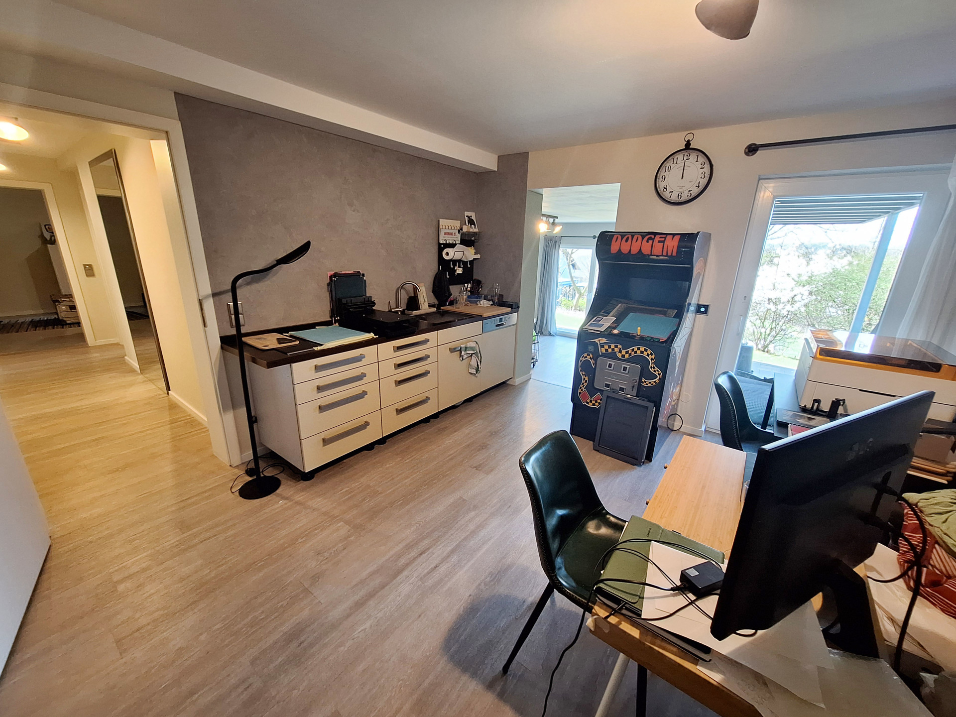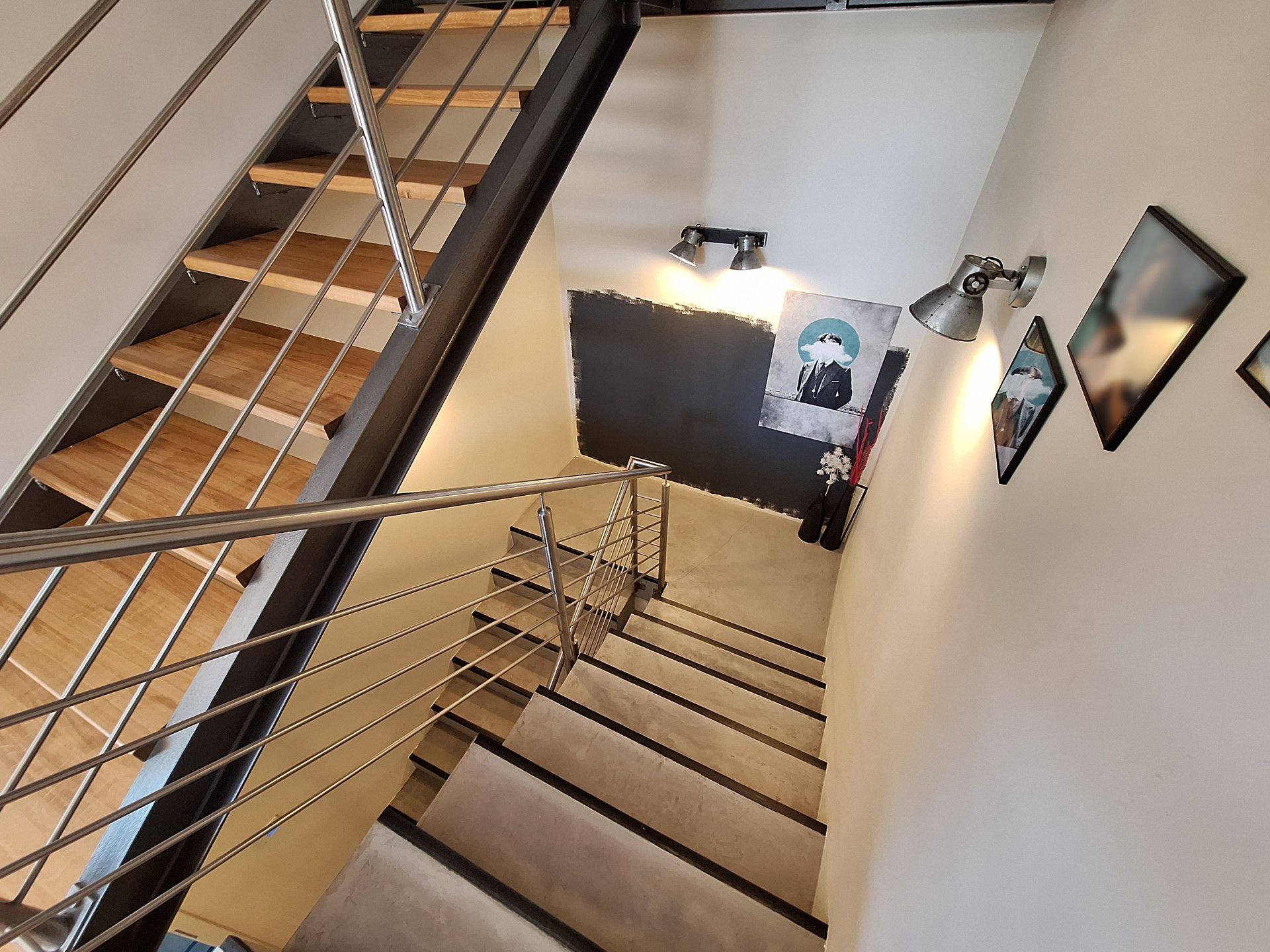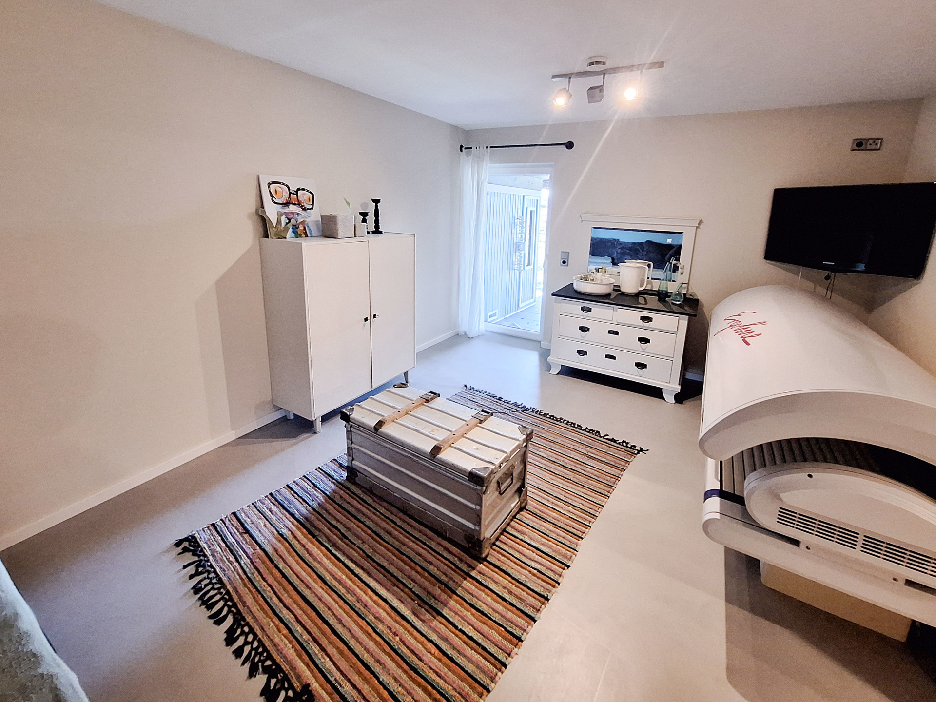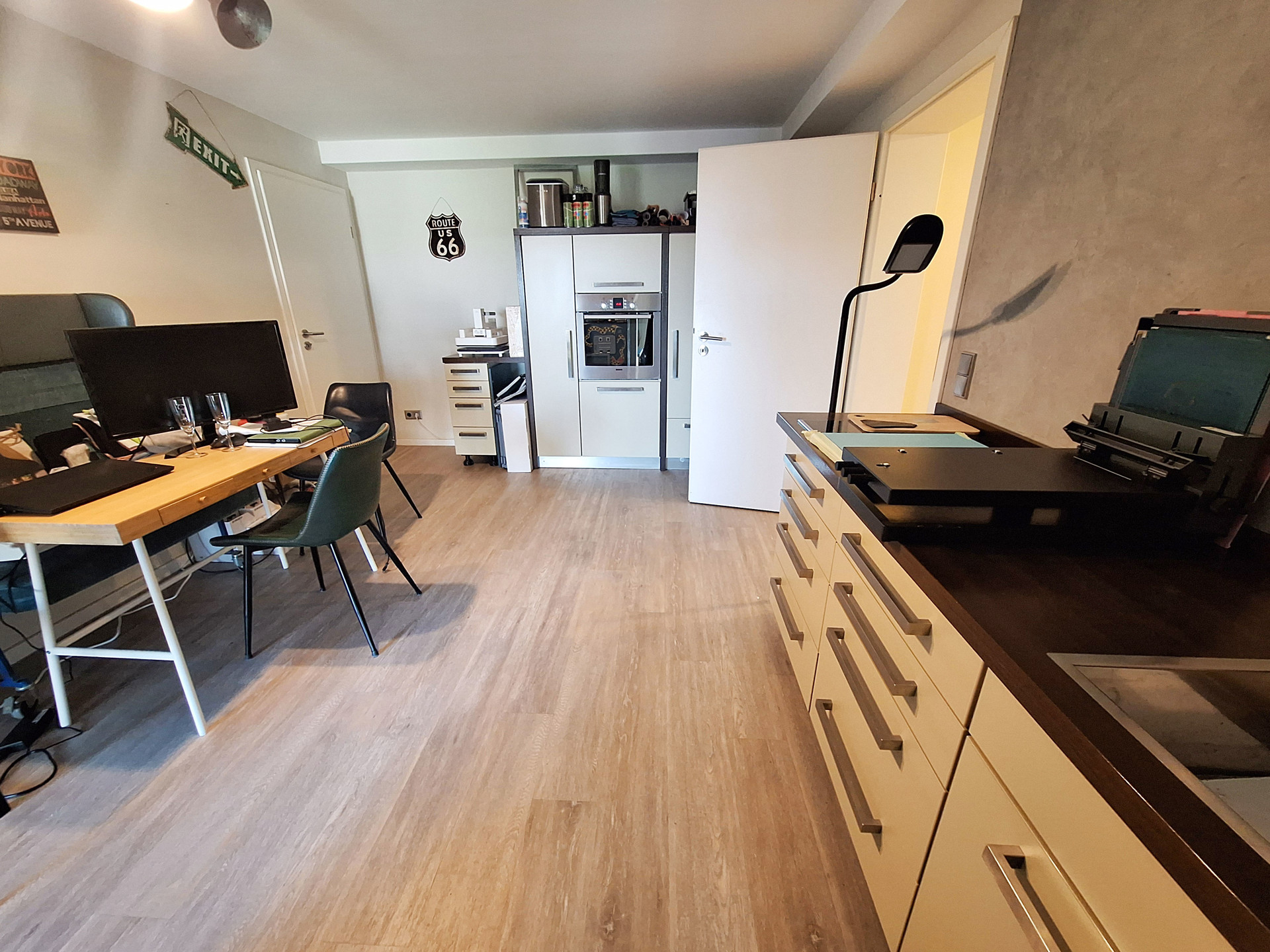 – Boden mit Fliesen, Echtholz Bambusboden und fugenlosen Boden in Betonoptik ausgesttatet