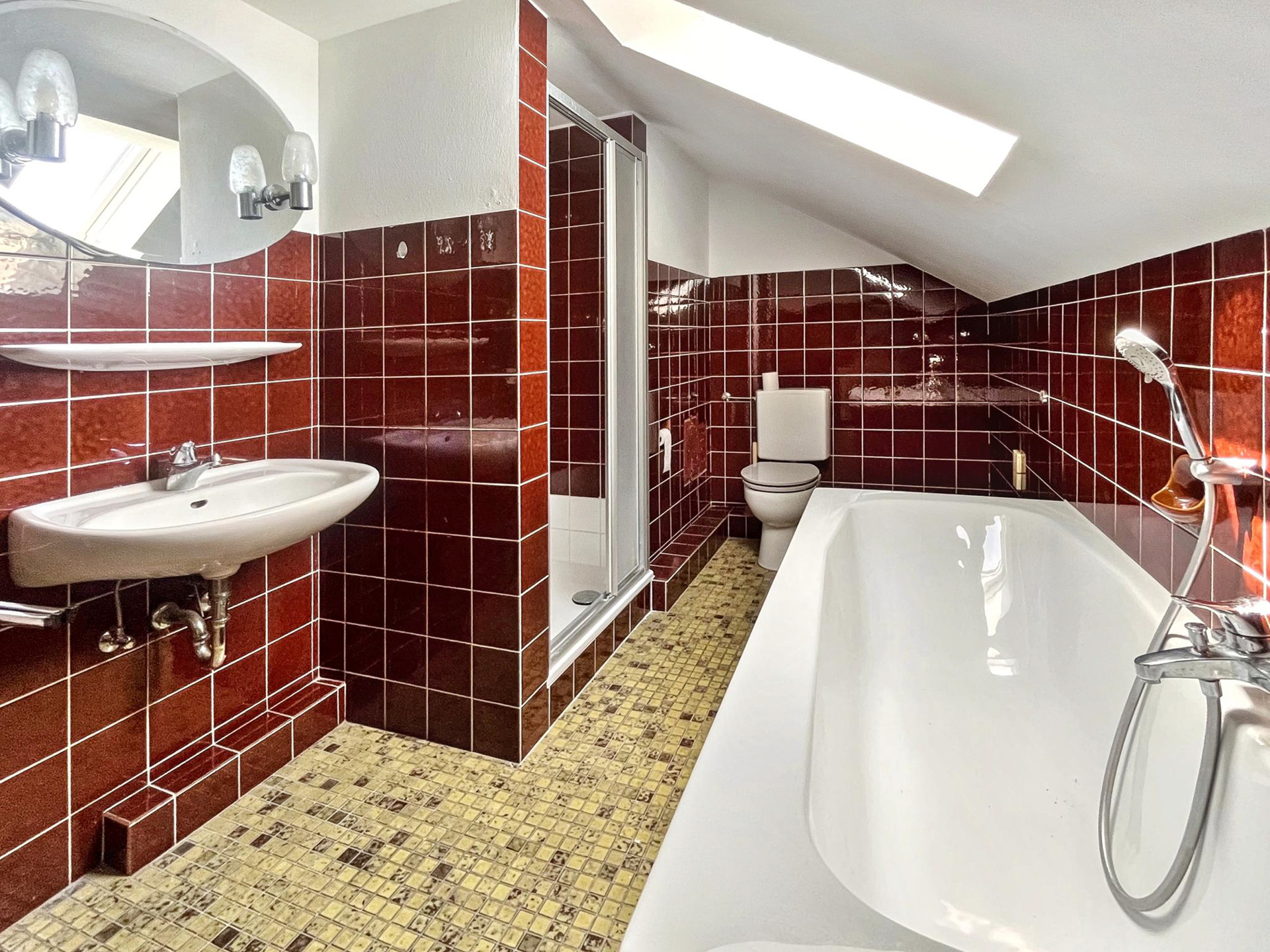• Dieses gepflegte Mehrfamilienhaus mit insgesamt sechs Wohneinheiten und einem bereits ausgebauten Dachgeschoss bietet eine attraktive Kombination aus solider Bausubstanz, modernisierter Ausstattung und weiterem Entwicklungspotenzial. Der Dachgeschossausbau ist derzeit nicht genehmigt und müsste im Rahmen einer Nachgenehmigung formalisiert werden.