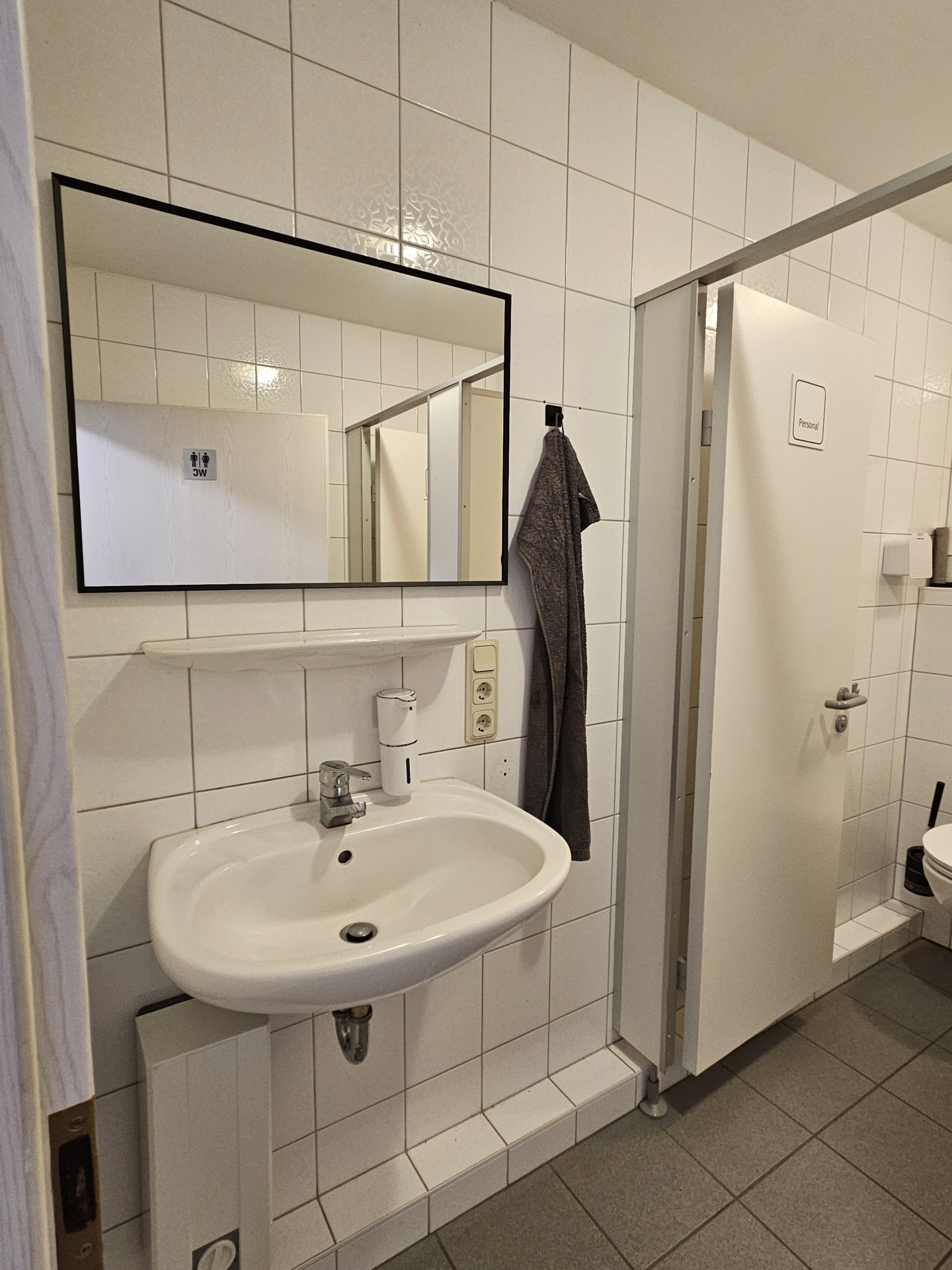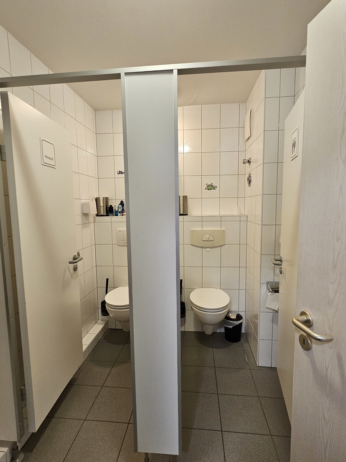 Die Räume sind gut geschnitten. Der Empfangsbereich sowie die beiden Toiletten sind idealerweise mit Fliesen versehen (Bodenbeläge gut abwischbar).