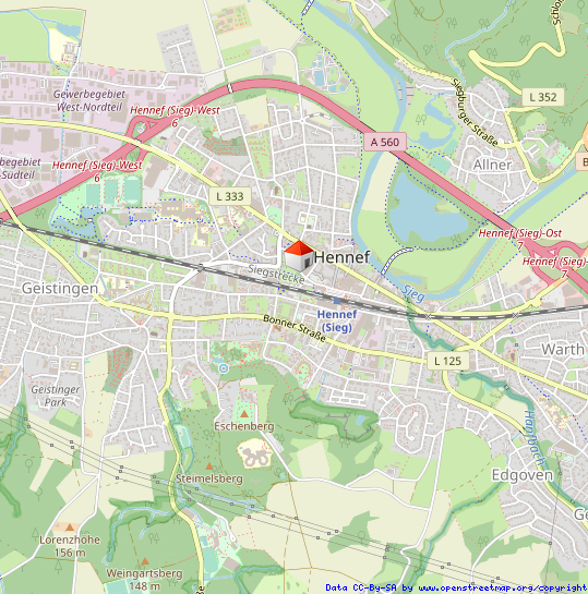 Die Räumlichkeiten, welche derzeit als Bürofläche genutzt werden, liegen sehr zentral in Hennef und sind für Sie und Ihre Kunden gut zu erreichen.