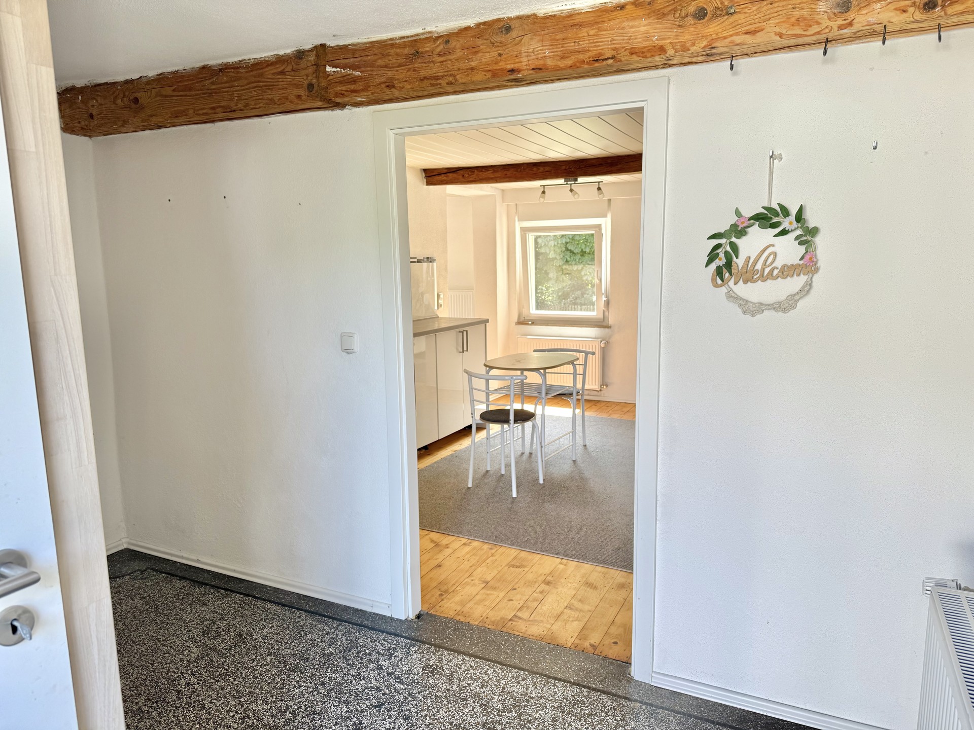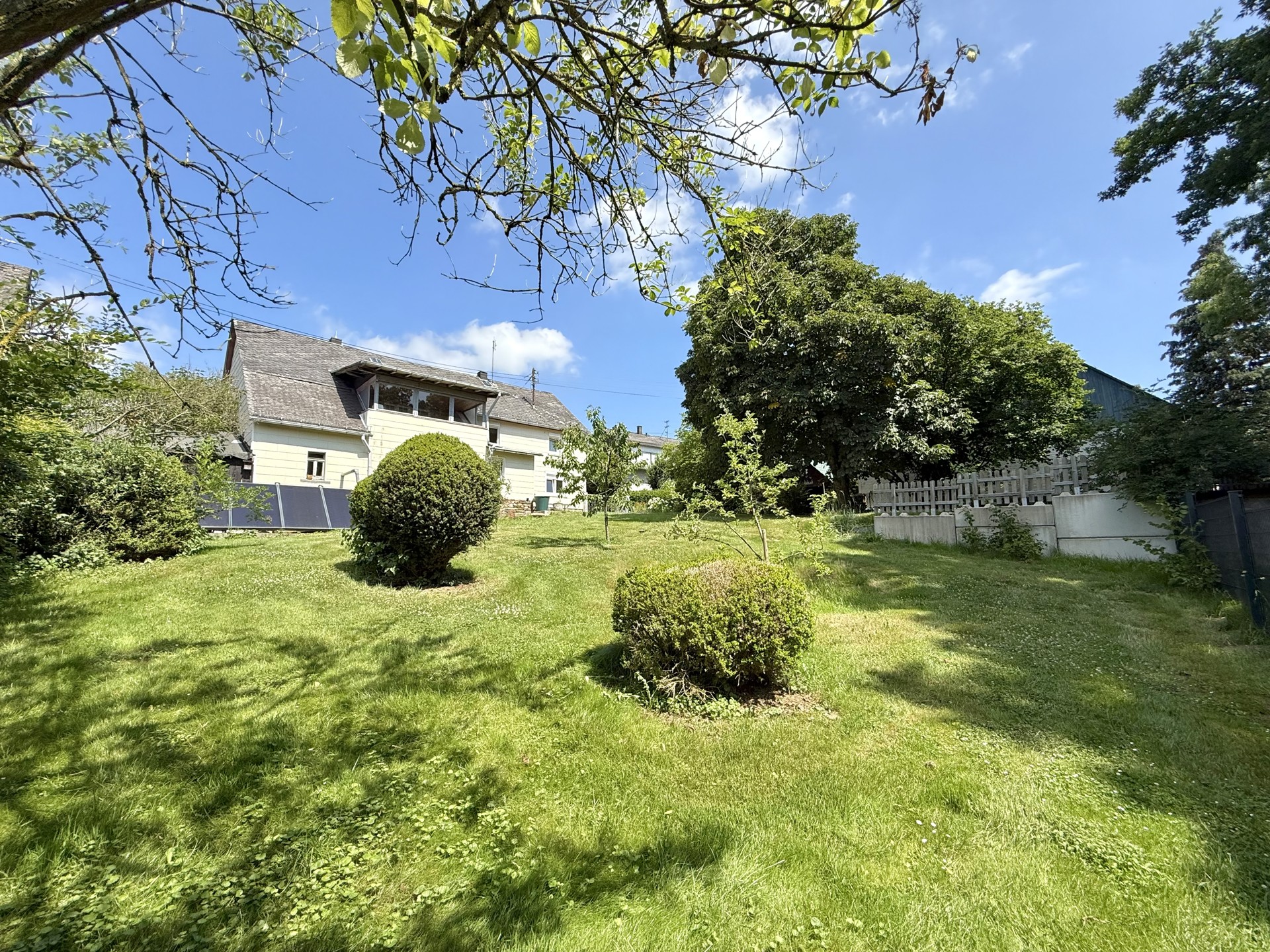 Das ehem. Fachwerkhaus aus ca. 1873 verbindet historischen Charme mit modernem Wohnkomfort & bietet ca. 152 m² Wfl.. Das Grundstück mit rd. 1.816 m² liegt am Ortsrand und eröffnet einen unverbaubaren Weitblick. Es verfügt im unteren Bereich über eine abgetrennte Fläche mit Törchen und einem Hühnerstall – Tierhaltung ist ggf. nach Prüfung der örtlichen Vorgaben möglich. Das Haus wurde im Inneren bereits umfangreich saniert und überzeugt mit einem aufgearbeiteten Dielenboden. Im EG empfängt Sie ein einladender Eingangsbereich, der in die Wohnküche und das Wohn-/Esszimmer übergeht. Das Gäste-WC sowie das Duschbad wurden 2023 komplett erneuert und mit Fußbodenheizung ausgestattet. Der große Heizungsraum schafft zusätzlichen Stauraum. Im OG befinden sich drei Schlafzimmer sowie ein Wintergarten, der durch den Austausch der Fenster weiter aufgewertet werden kann. Ein weiteres, ebenfalls in 2023 erneuertes Bad mit Whirlpool und Fußbodenheizung sorgt für besonderen Komfort. Der Speicher ist ausbaubar. Ein Holzschuppen und eine Garage bieten zusätzliche Nutzfläche.