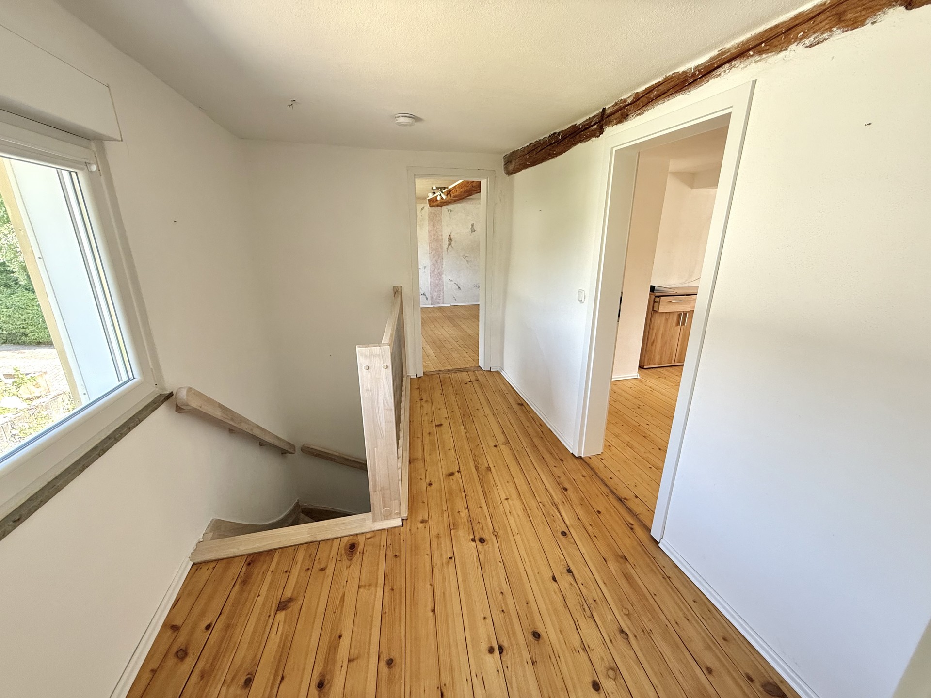 2023: Aufarbeitung des Dielenboden im Flur UG+OG, neue Türen