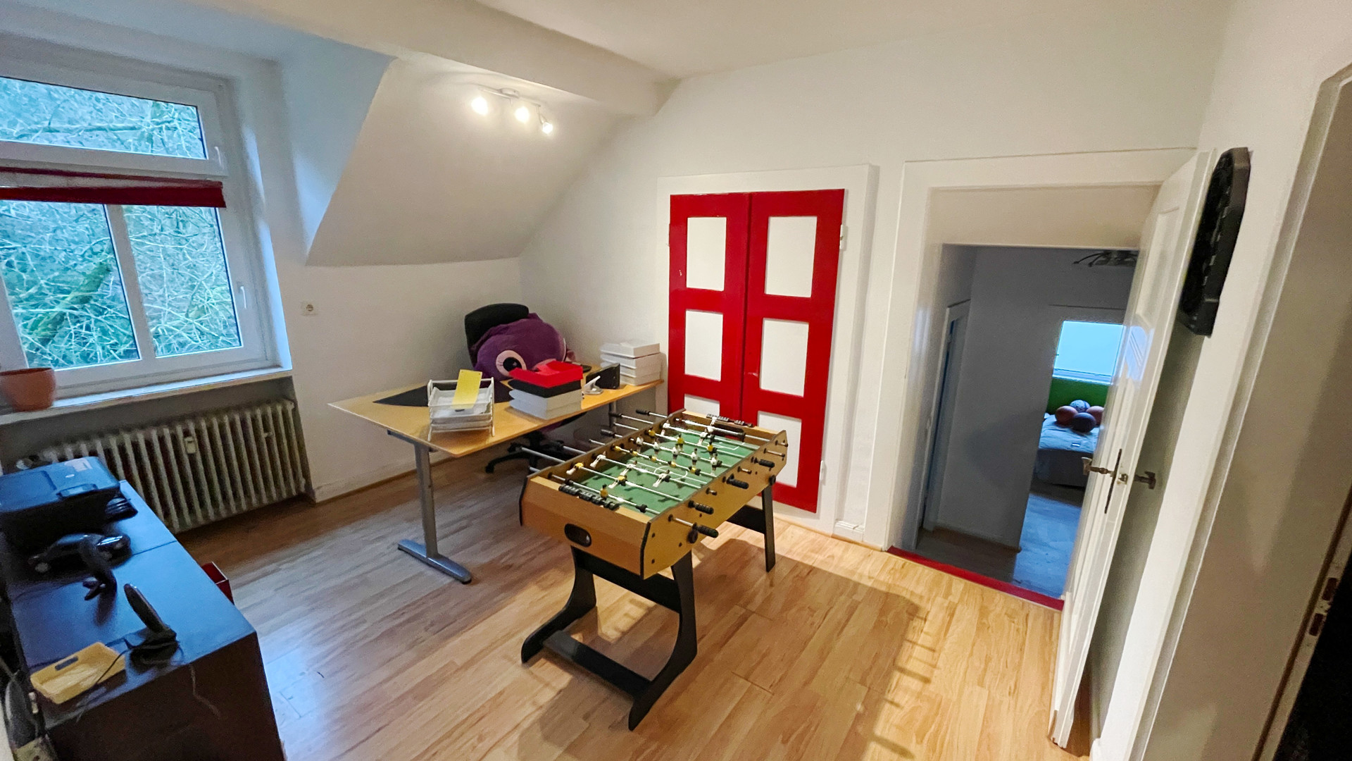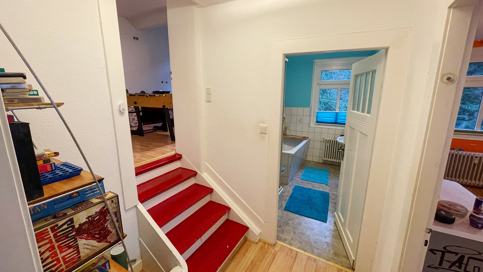 • Dieses gepflegte Einfamilienhaus wurde in den 1920er-Jahren auf einem ca. 925 m² großen Grundstück errichtet und bietet direkten Zugang zur Agger. Die Wohnfläche von ca. 158 m² verteilt sich auf insgesamt sieben Zimmer und bietet vielfältige Nutzungsmöglichkeiten. Im Erdgeschoss erwartet Sie neben der einladenden Diele eine separate Küche sowie ein großzügiger Wohnbereich mit direktem Übergang zum offenen Esszimmer – ideal für gesellige Stunden mit Familie und Freunden. Im Obergeschoss befinden sich die Schlaf- und Kinderzimmer sowie zwei Badezimmer, die jeweils mit einer Badewanne ausgestattet sind. Ein zusätzliches Durchgangszimmer bietet sich optimal als Hobby- oder Arbeitsraum an. Der liebevoll angelegte Garten mit Blick auf die Agger bietet viel Potenzial für individuelle Gestaltungsideen. Weitere Stauflächen stehen Ihnen im Kellergeschoss zur Verfügung. Abgerundet wird das Angebot durch eine Garage sowie eine Gartenterrasse.