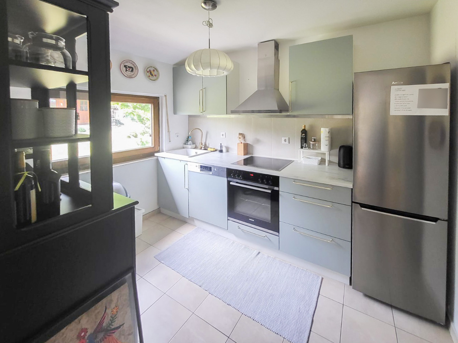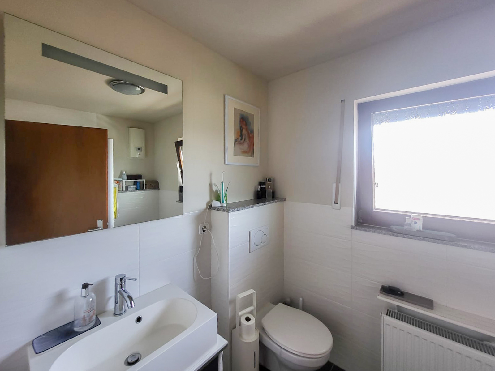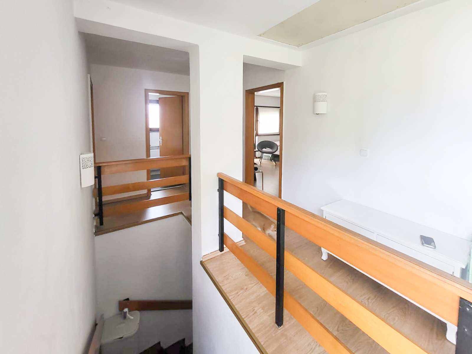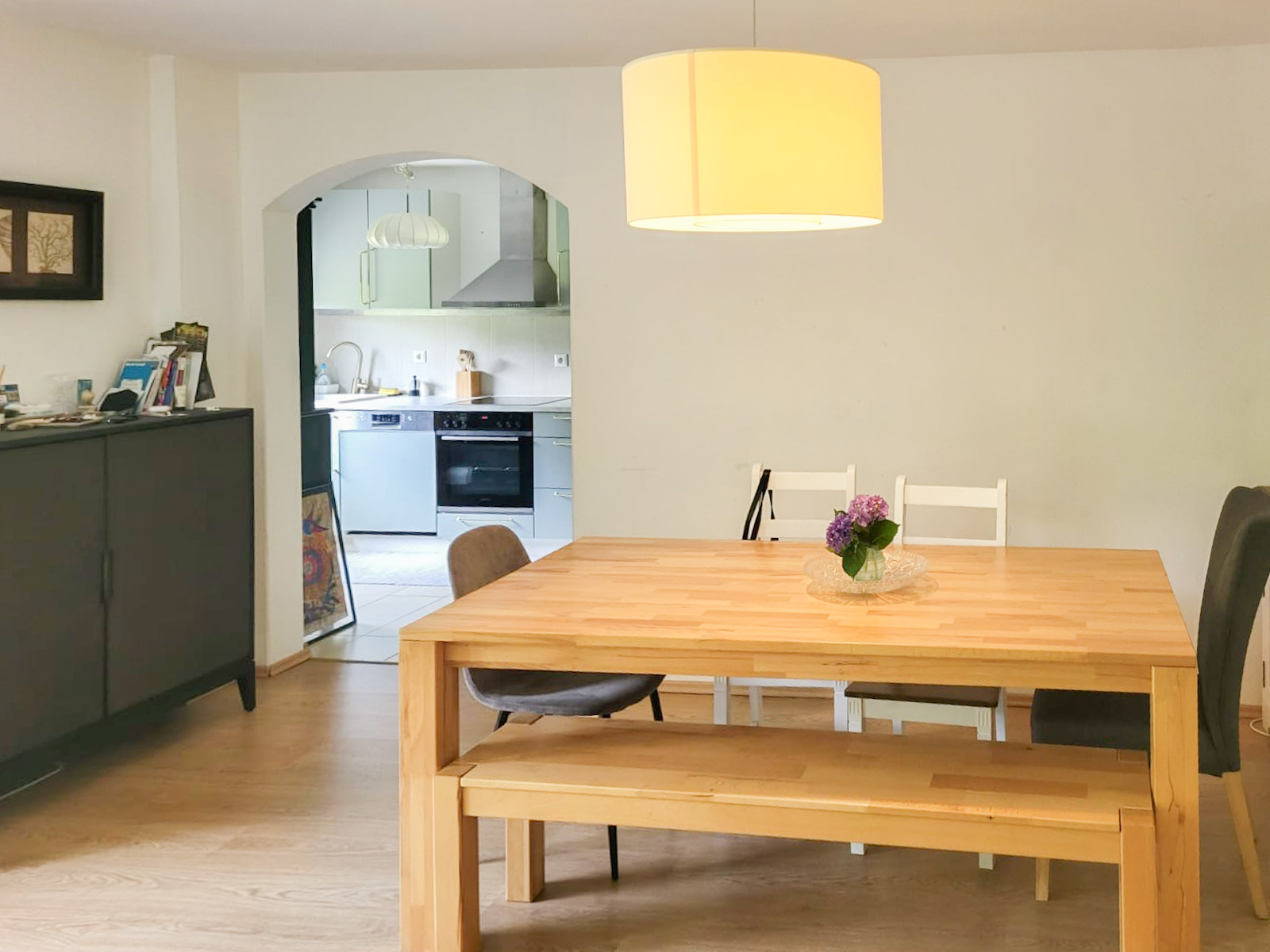 Die Wohnfläche von ca. 135 m² verteilt sich auf zwei Ebenen und bietet ausreichend Platz für Familien, Paare oder alle, die Raum zum Leben und Arbeiten suchen. Zudem gibt es einen separaten Eingang von außen zum Obergeschoss.