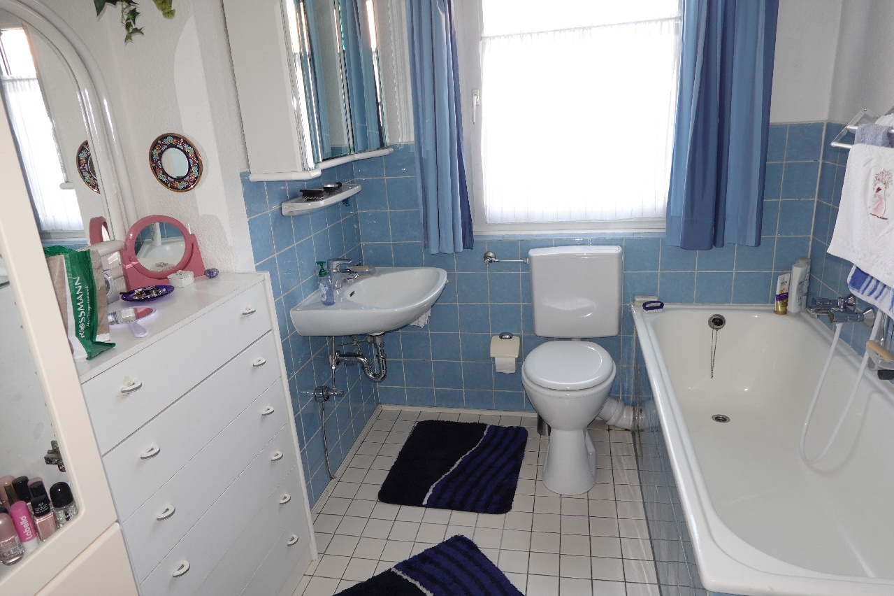 Die Wohnungen im Hochparterre und Obergeschoss verfügen über Tageslichtbäder. Im OG sowie DG befinden sich noch zwei separate WC mit Fenster.