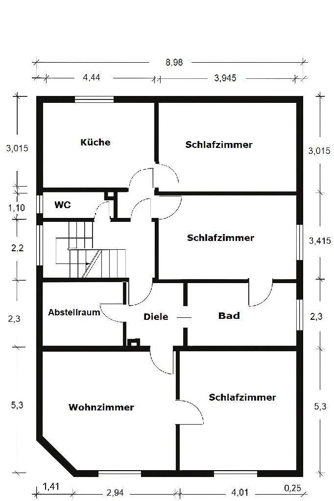 Im Wohnhaus sind die Wohnungen über das zentrale und gepflegte Treppenhaus erreichbar.