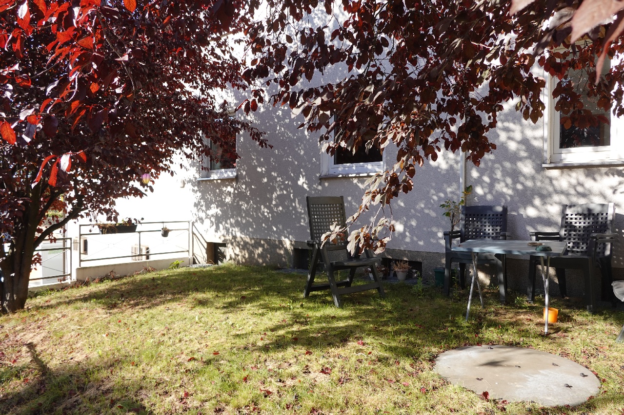 Gartenbereich mit Sitzgelegenheit