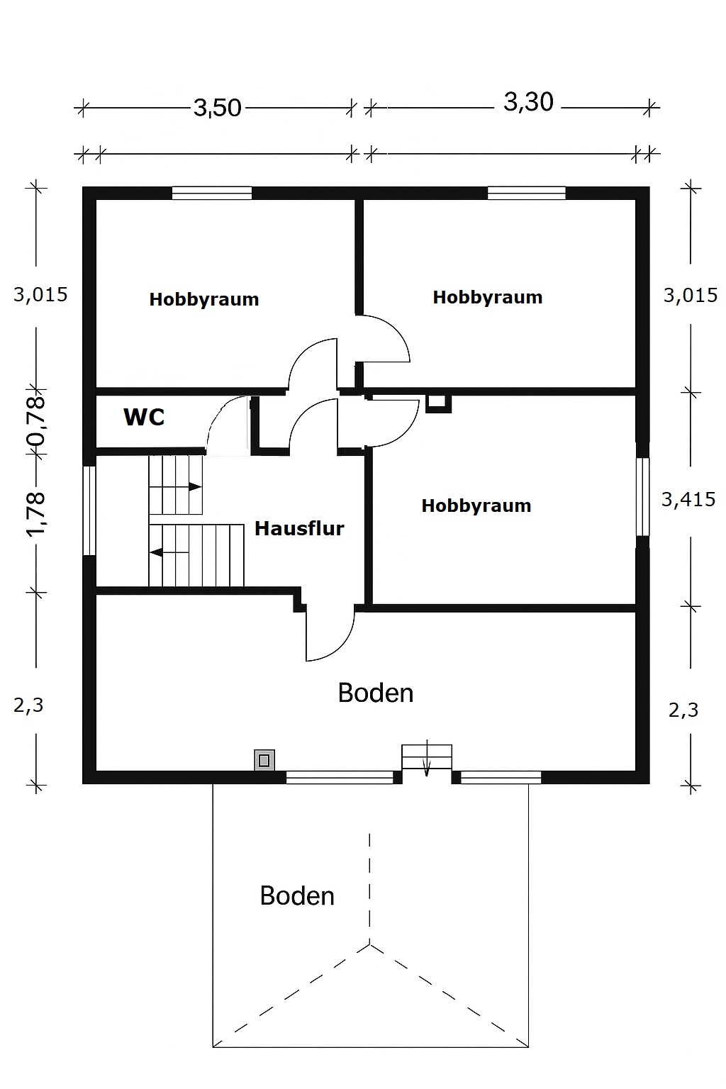 Nebenflächen: Spitzboden und Vollkeller im Haupthaus mit Waschküche