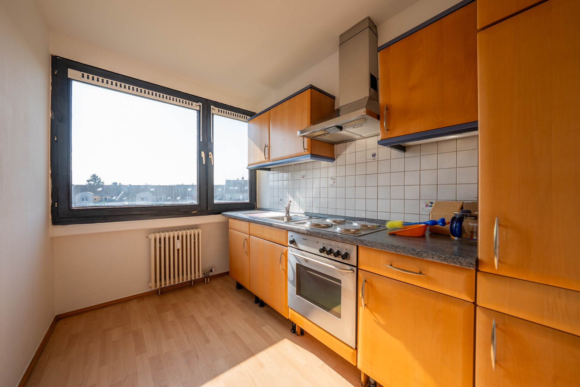 • Dieses gepflegte 1-Zimmer-Appartement im 4. Obergeschoss eines Mehrfamilienhauses (Baujahr 1974) ist bequem über einen Aufzug erreichbar und bietet ca. 39 m² Wohnfläche. Der helle Wohn- und Schlafbereich mit großer Fensterfront sorgt für eine angenehme Wohnatmosphäre und bietet Zugang zum Balkon mit Ausblick ins Umfeld. Eine separate Küche mit Einbauküche sowie ein funktional ausgestattetes Badezimmer mit Badewanne ergänzen das Raumangebot.