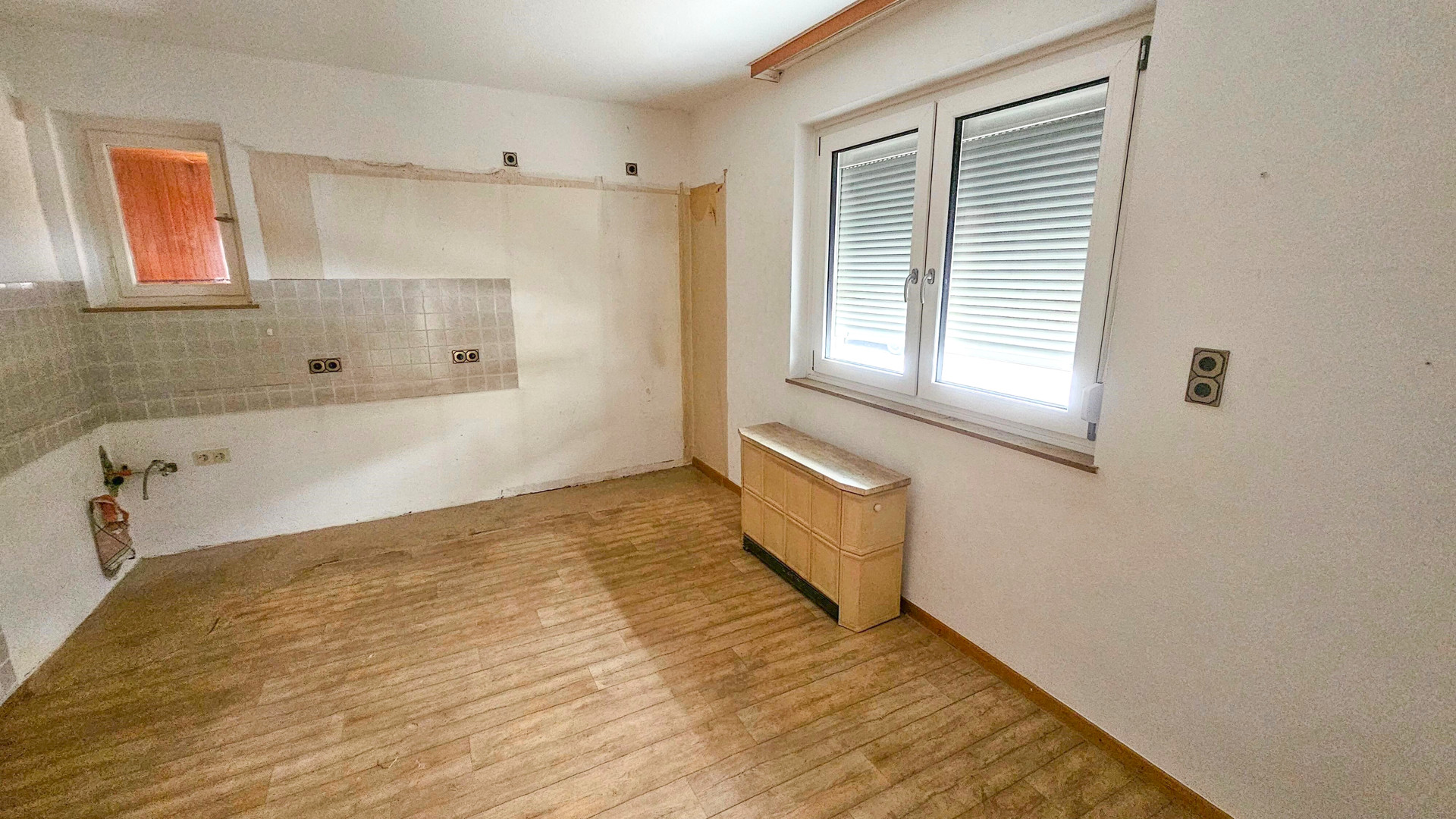 Die rechte Einheit verfügt über eine Wohnfläche von ca. 105 m², während die linke Einheit ca. 75 m² umfasst. Beide Häuser sind renovierungsbedürftig, bieten aber durch ihre flexible Raumaufteilung vielfältige Gestaltungsmöglichkeiten. Eine Verbindung der beiden Einheiten ist problemlos möglich, sodass ein großzügiges Einfamilienhaus entstehen kann.