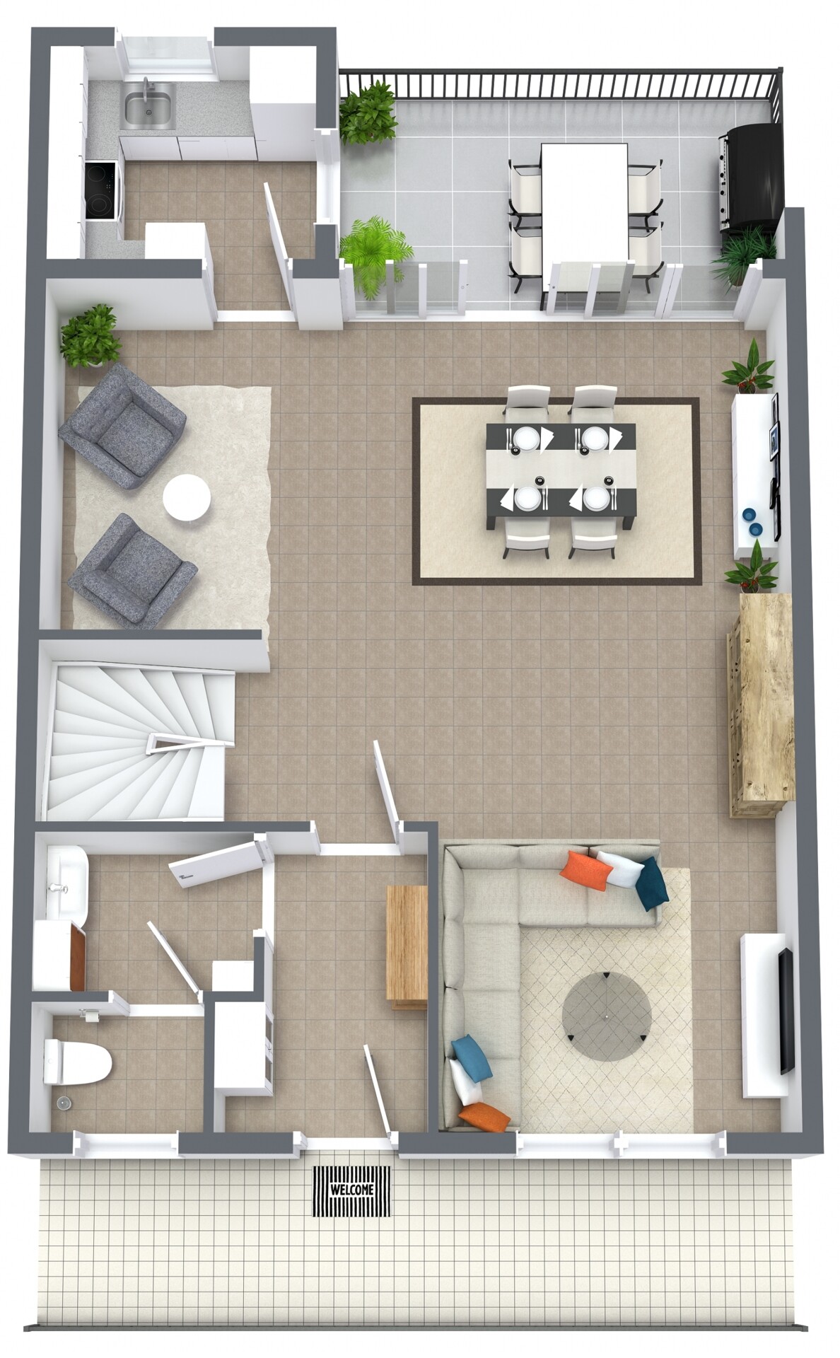 • Über eine innenliegende Treppe im Wohnbereich gelangen Sie ins Dachgeschoss.