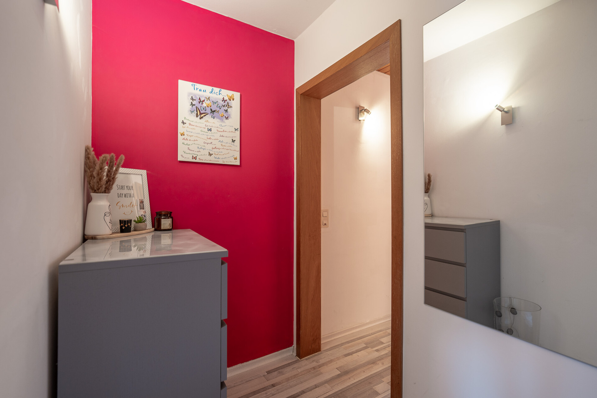 Auf rund 179 m² Wohnfläche, verteilt auf zwei eigenständige Einheiten, entfaltet sich ein Raum voller Perspektiven. Ob als Mehrgenerationenhaus, als Rückzugsort für zwei Familien oder als Kapitalanlage mit bestehenden Mieteinnahmen – hier verschmelzen Flexibilität, Beständigkeit und Lebensqualität auf harmonische Weise. Der gemeinschaftliche Flur verbindet beide Einheiten und öffnet den Blick in den Garten, das grüne Herz des Anwesens. Von hier aus gelangt man auch zur überdachten Terrasse der ersten Einheit, ein stiller Rückzugsort im Grünen, der Privatsphäre mit einem Hauch von Exklusivität vereint.