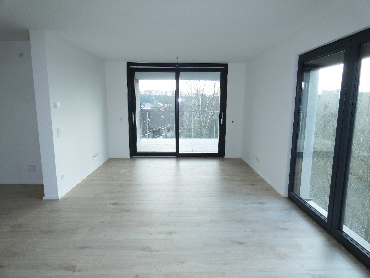 Der großzügige Wohn-, Ess- und Kochbereich erstreckt sich über ca. 50 m² und wird durch das Panoramafenster zur Wupper lichtdurchflutet. Zwei Schiebetürelemente bieten einen direkten Zugang zum nach Südwest ausgerichteten Balkon, der an sonnigen Tagen zum Entspannen und Sonnenbaden einlädt.