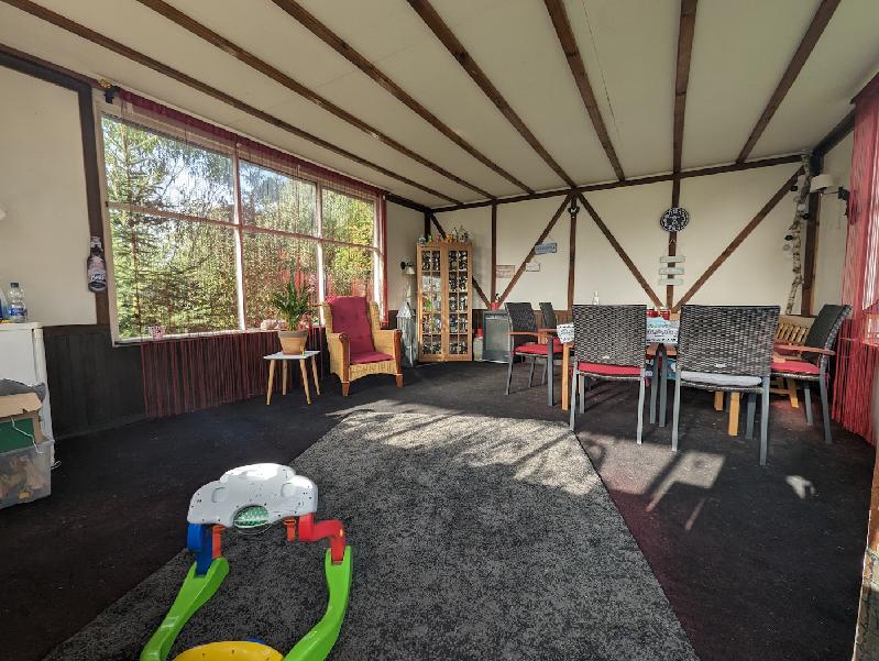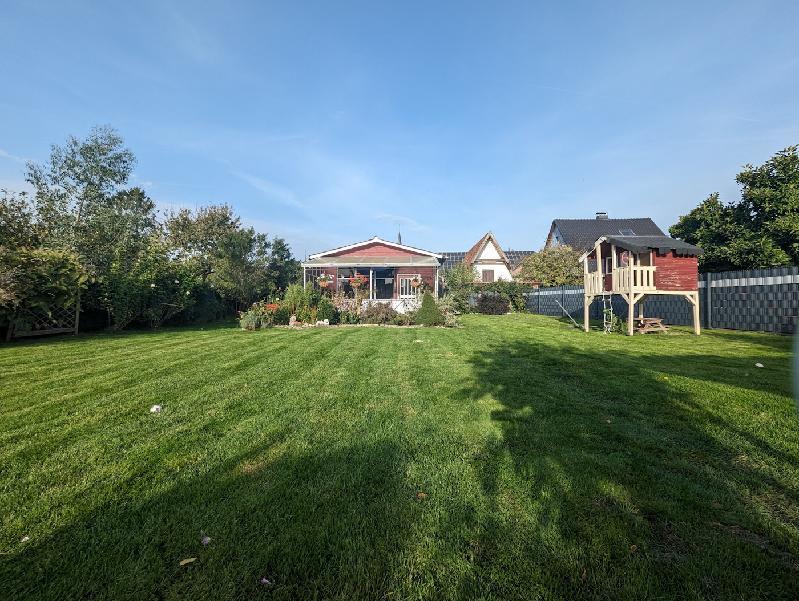 Das Haus umgibt viel Rasen – leicht und mit wenig Zeitaufwand in den Griff zu kriegen- es hat zudem ein sensationell großes Gartenhaus mit Freisitz und ein extra Spielehaus für die Kleinen.