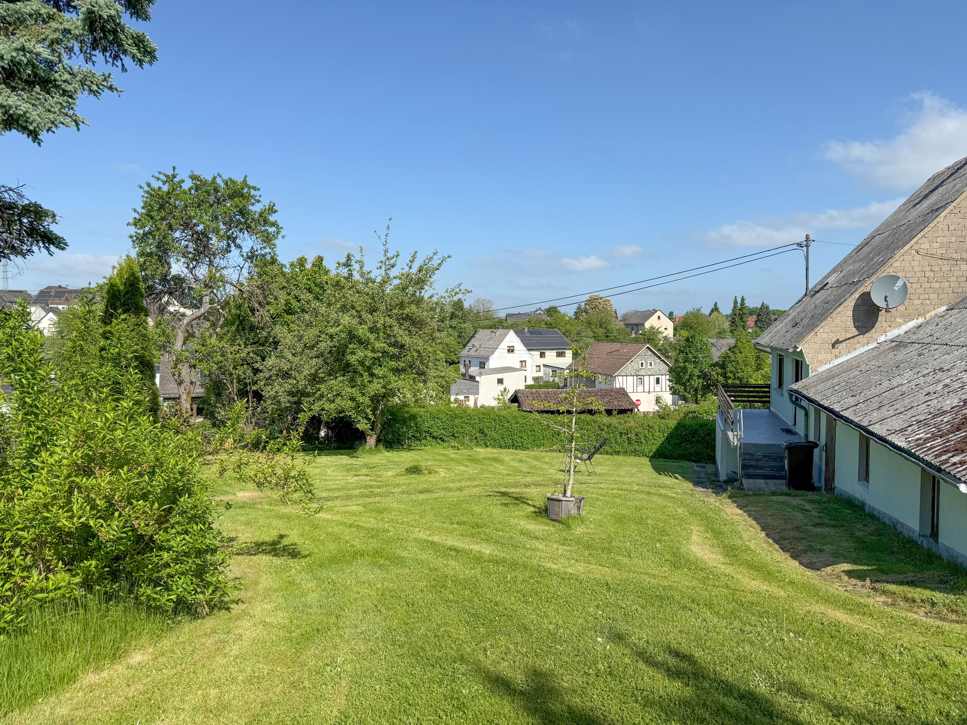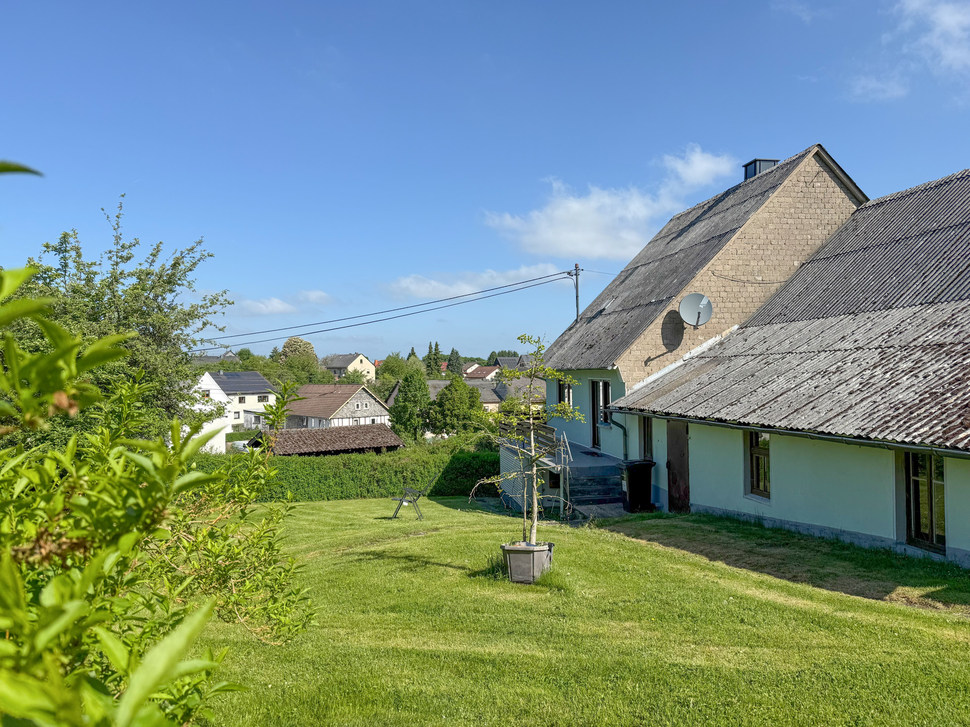 So erhielt es neben einer Erweiterung um ein Schlafzimmer auch eine Erneuerung der Außenwände von Fachwerk zu Hohlblockmauerwerk. Die Immobilie bietet Ihnen eine Wohnfläche von rund 128 m². Das Erdgeschoss teilt sich in Wohnen, Schlafen, Kochen auf. Das Duschbad ist über den angrenzenden Heizungsraum zu erreichen, über welchen Sie auch zum Wirtschaftsbereich/Schuppen gelangen. Die separate Hauptwohnung mit 4ZKB im Obergeschoss besitzt einen großen Balkon, von dem aus Sie auf das schöne, weitläufige Gartengrundstück gelangen – ideal für Familien, Hobbygärtner oder Tierfreunde! Der geräumige Speicher hält weiteres Ausbaupotenzial bereit. Der alte Scheunenteil dient nicht nur als Parkmöglichkeit für einen PKW, sondern auch als zusätzliche Abstellfläche. Hier finden Sie ausreichend Raum für Werkstatt, Fahrräder oder saisonale Lagerung. Das solide Gebäude bietet eine hervorragende Basis und viel Potenzial, um mit handwerklichem Geschick Ihren persönlichen Stil einzubringen.