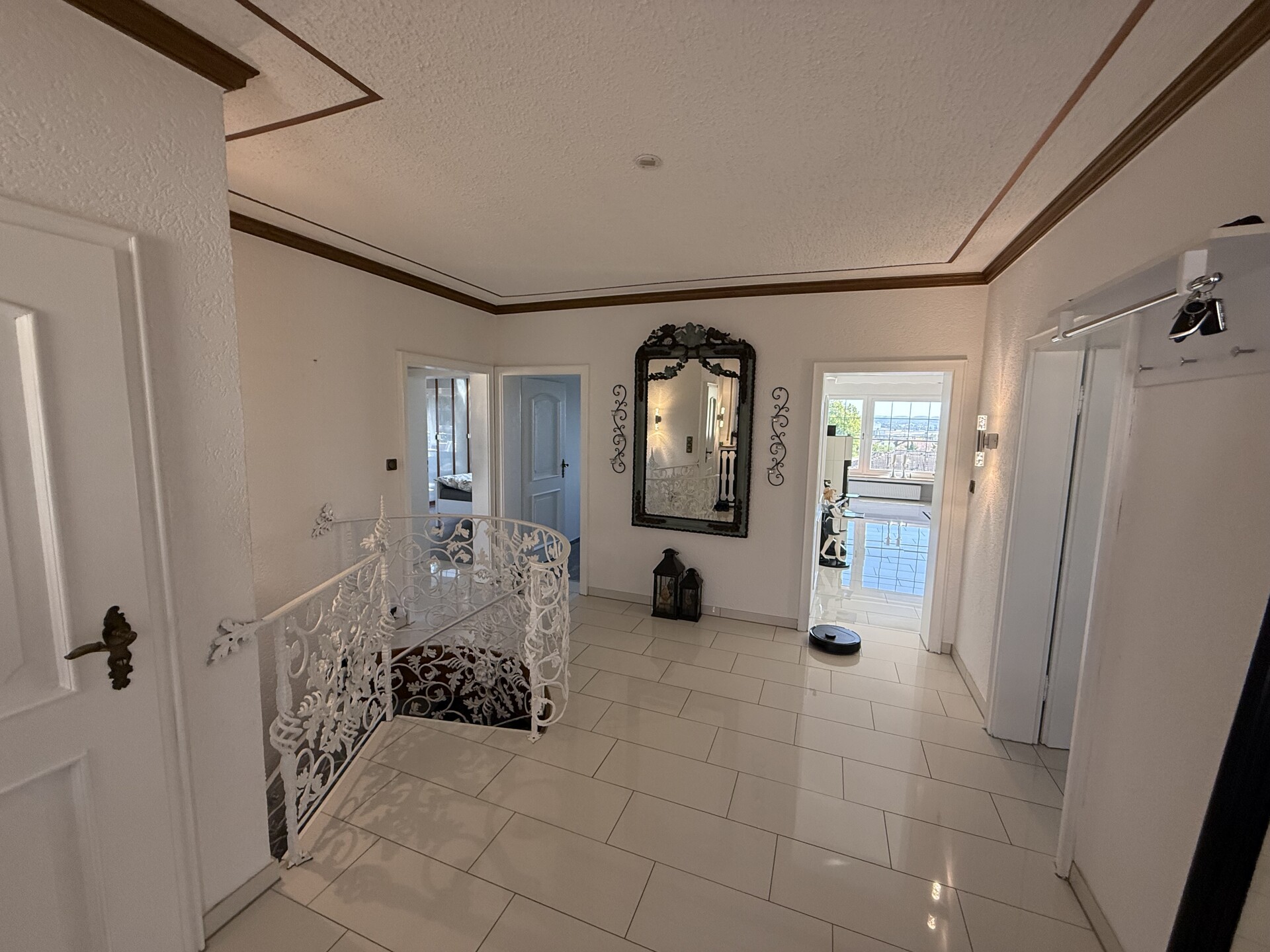Das Haus präsentiert sich in einem stilvollen, hochwertigen Design, geprägt von eleganten Materialien, großen Fensterflächen und einem durchdachten Raumkonzept. Der lichtdurchflutete Wohn- und Essbereich besticht mit weißen Hochglanzfliesen, einer edlen Natursteinwand und einer harmonischen Wohlfühlatmosphäre. Die neuwertige Einbauküche fügt sich perfekt in das moderne Ambiente ein. Das exklusive Wellnessbad im Erdgeschoss bietet eine großzügige, bodenebene Walk-In-Dusche mit Glasabtrennung, hochwertige Armaturen und geschmackvolle Fliesen. Ein weiteres Highlight ist die beeindruckende Wellnessoase im Untergeschoss: großer Jacuzzi, separate Dusche, viel Platz für Fitnessgeräte sowie ein einladendes Spa-Ambiente machen diesen Bereich zu einem echten Rückzugsort.