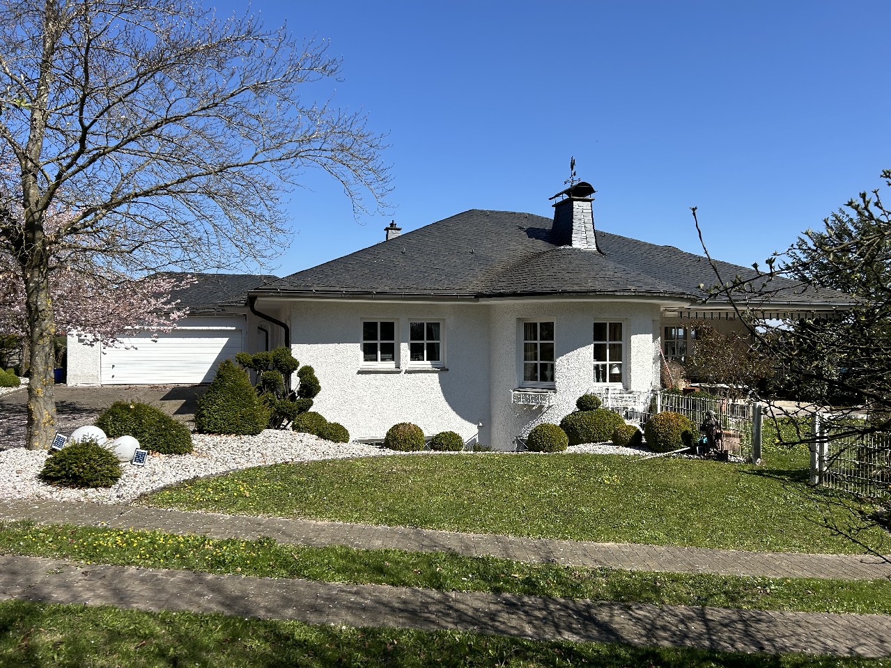 Traumhaftes Einfamilienwohnhaus mit Einliegerwohnung für den anspruchsvollen Käufer. Die Hauptwohnung erstreckt sich über das gesamte Erdgeschoss und eignet sich daher auch als Altersruhesitz. Natürlich fühlt sich auch die junge Familie hier wohl. In der Einliegerwohnung haben früher die heranwachsenden Kinder ihr eigenes Reich gehabt. Diese kann ebenso für eine 2. Wohnpartei oder auch als Büro-/Praxis genutzt werden. Die hochwertige Ausstattung lässt keine Wünche offen. Auf der überdachten Terrasse sitzen Sie geschützt. Eine großzügige Garage bietet Platz für 2 Autos. Die geschmackvoll angelegten Außenanlagen mit altem Baumbestand und Gartenteich laden zum Ausruhen und Verweilen ein. Das Dachgeschoss kann bei Bedarf noch ausgebaut werden. In der Sauna können Sie an kalten Tagen Entspannung finden. Sofort frei! Eine Besichtigung stimmen wir gerne nach Absprache mit Ihnen ab.