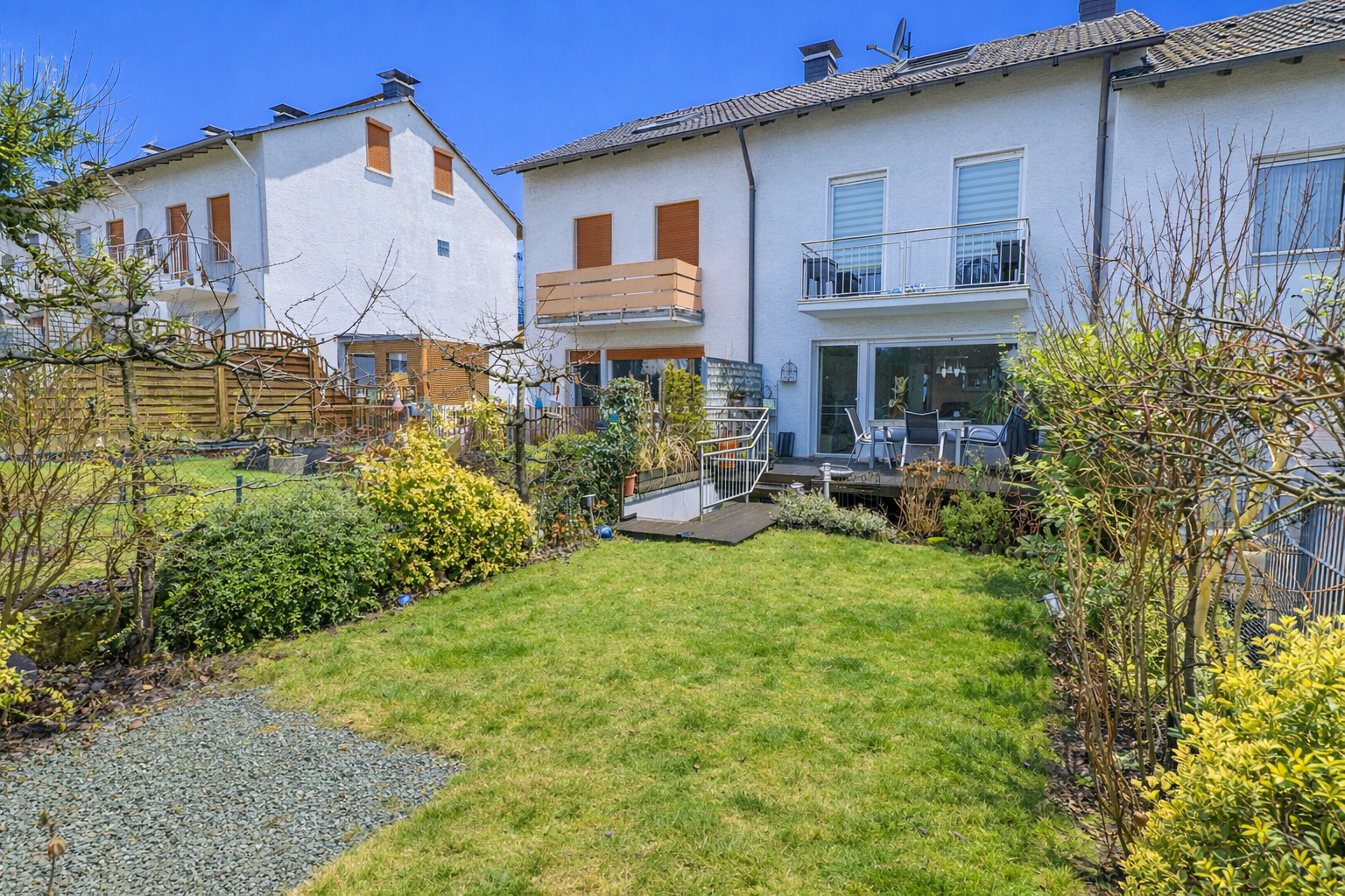 Das Erdgeschoss bildet den zentralen Lebensmittelpunkt des Hauses. Hier befinden sich die Küche mit integriertem Essbereich sowie das Wohnzimmer mit direktem Zugang zur Terrasse und fließendem Übergang in den rückseitigen Garten. Der Garten, die Terrasse sowie der Balkon im Obergeschoss sind ideal nach Südosten ausgerichtet.