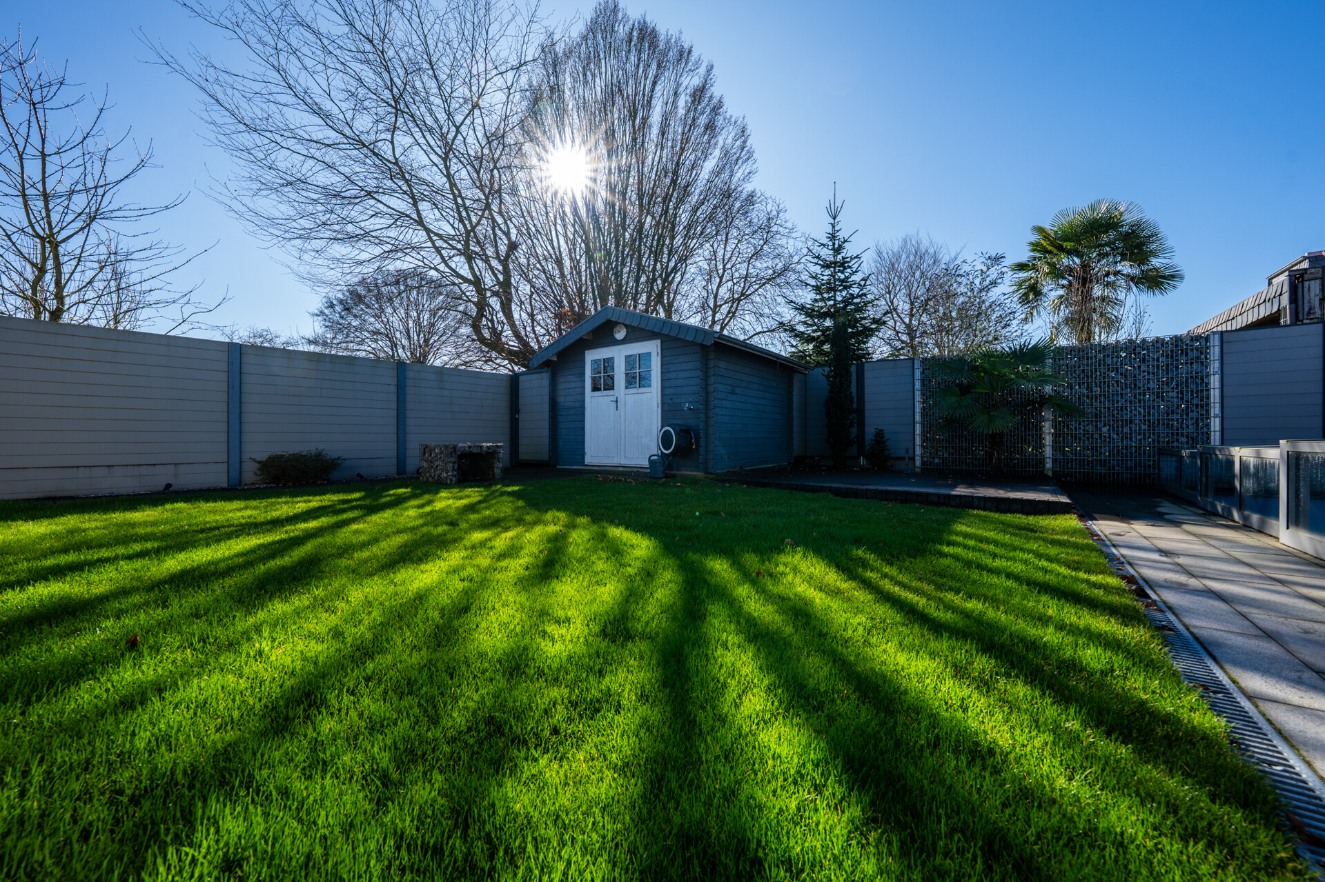 • Diese gepflegte Doppelhaushälfte aus dem Jahr 1995 bietet auf ca. 126 m² Wohnfläche modernen Wohnkomfort für die ganze Familie. Im Erdgeschoss erwarten Sie ein heller Wohn- und Essbereich mit angrenzendem Wintergarten, eine moderne Küche und ein Gäste-WC. Das Obergeschoss verfügt über vier Zimmer inklusive Ankleidezimmer und ein Tageslichtbad, während das ausgebaute Dachgeschoss flexiblen Raum für Gäste, Hobby oder Homeoffice bereithält. Das Untergeschoss überzeugt mit einem eigenen Wellnessbereich samt Sauna, und im Außenbereich lädt der Garten mit einem beheizten Außenpool zur Entspannung ein. Damit die Gartenpflege mühelos gelingt, sorgen eine über einen eigenen Brunnen gespeiste Bewässerungsanlage sowie zwei Mähroboter für stets gepflegte Grünflächen.