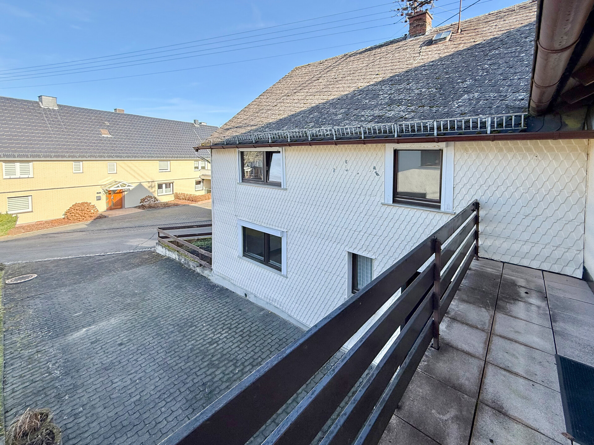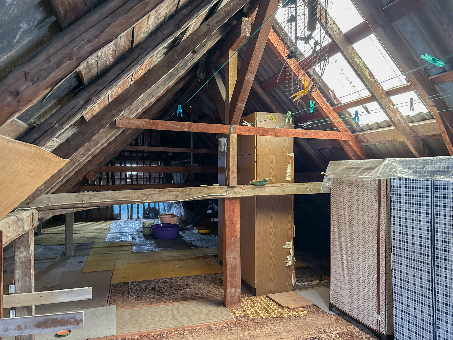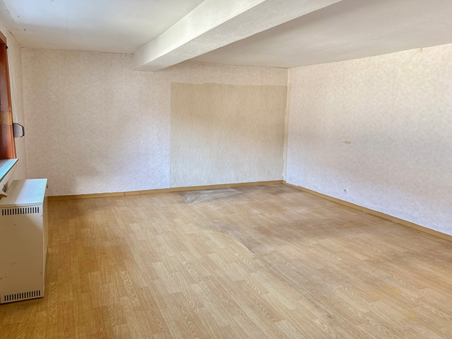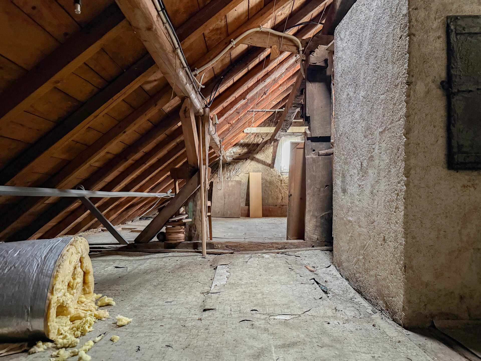 • Dieses Angebot umfasst ein Wohnhaus aus ca. 1900 sowie ein ehem. Nebengebäude, das um 1970 zu Wohnraum umgebaut wurde. Beide Gebäude stehen auf einem ca. 382 m² großen Grundstück und könne wieder verbunden werden, wodurch flexible Möglichkeiten entstehen. Der linke, ältere Teil erstreckt sich über 2 Etagen. Im EG befinden sich der Eingangsbereich mit ehemaligen Küchenanschlüssen, ein Wohnzimmer, ein Hauswirtschaftsraum sowie das frühere Bad. Über eine Luke im Eingangsbereich ist ein Erdkellerraum zugänglich. Im OG liegen ein Durchgangszimmer und ein Schlafzimmer, der Dachboden ist über eine Treppe erreichbar. Die Deckenhöhen sind überwiegend niedrig (ca. 1,91–2,06 m, Balken noch niedriger). Eine frühere Verbindung zum zweiten Haustrakt im OG wurde verschlossen, kann jedoch wieder geöffnet werden. Der rechte, jüngere Gebäudeteil verfügt ebenfalls über 2 Etagen. Im EG befinden sich ein Duschbad und die Küche. Das OG bietet ein großes Wohnzimmer, ein Schlafzimmer mit Anschlussmöglichkeit zum Altbau sowie ein Kinderzimmer mit Balkon. Der Dachboden dient als Stauraum. Ein Kellerraum wird als Werkstatt genutzt. Im hinteren Grundstücksbereich befindet sich ein Garten mit Gastank zur Beheizung des neueren Hausteils, der derzeit nur über den Außenbereich erreichbar ist.