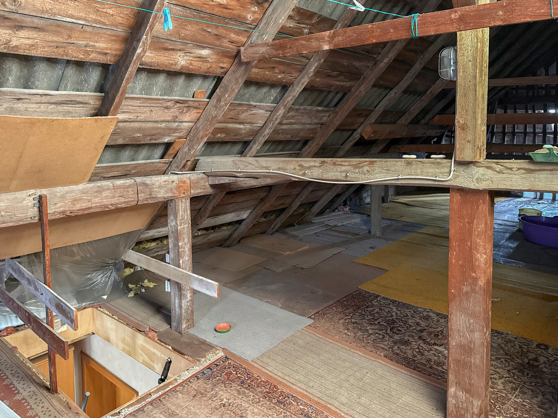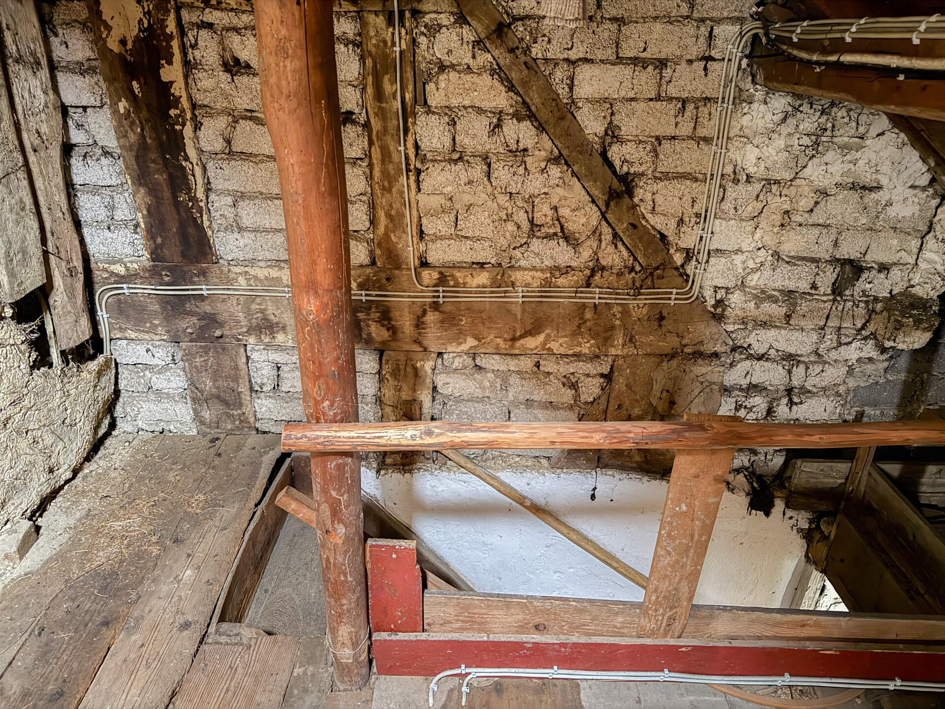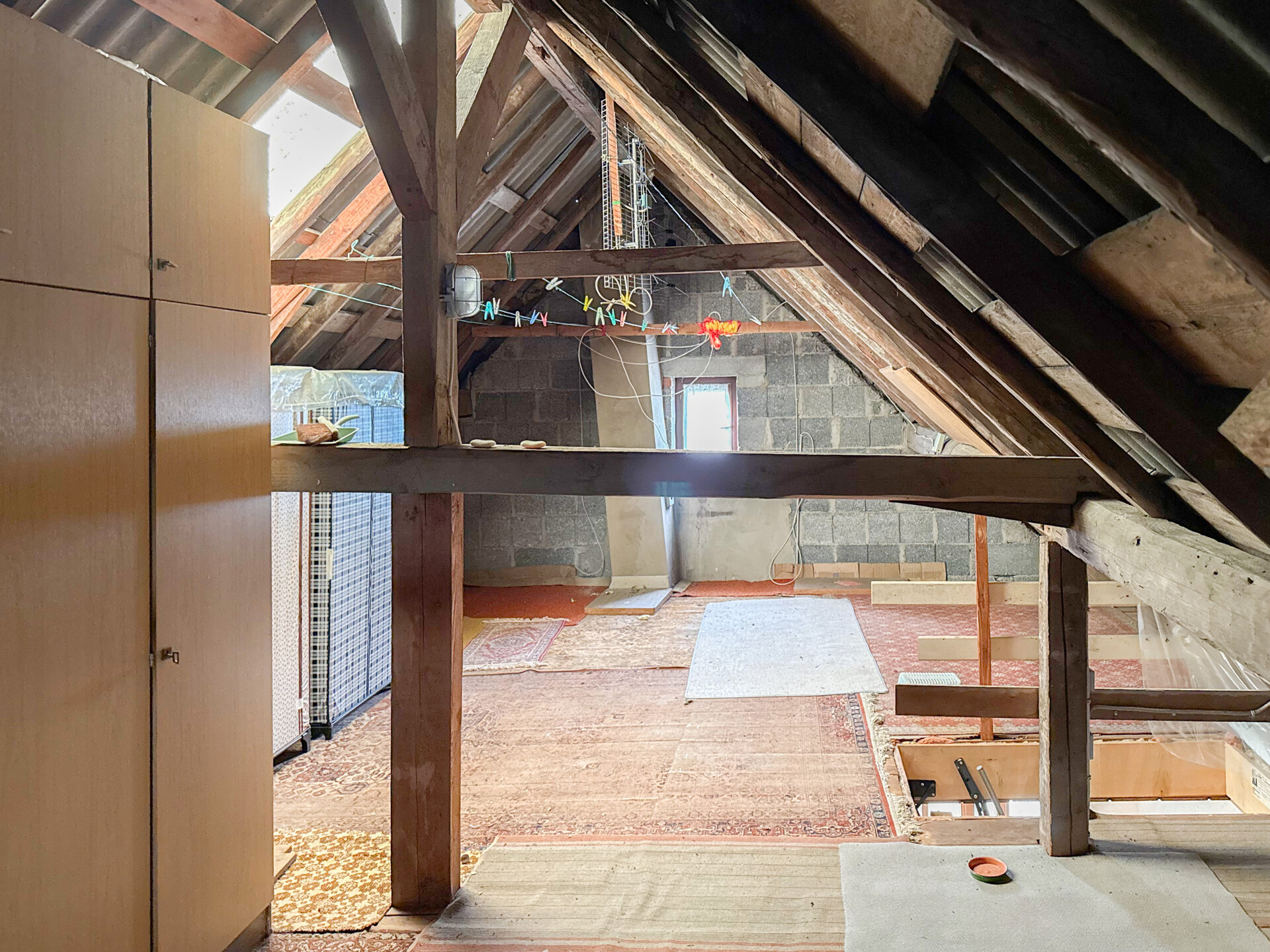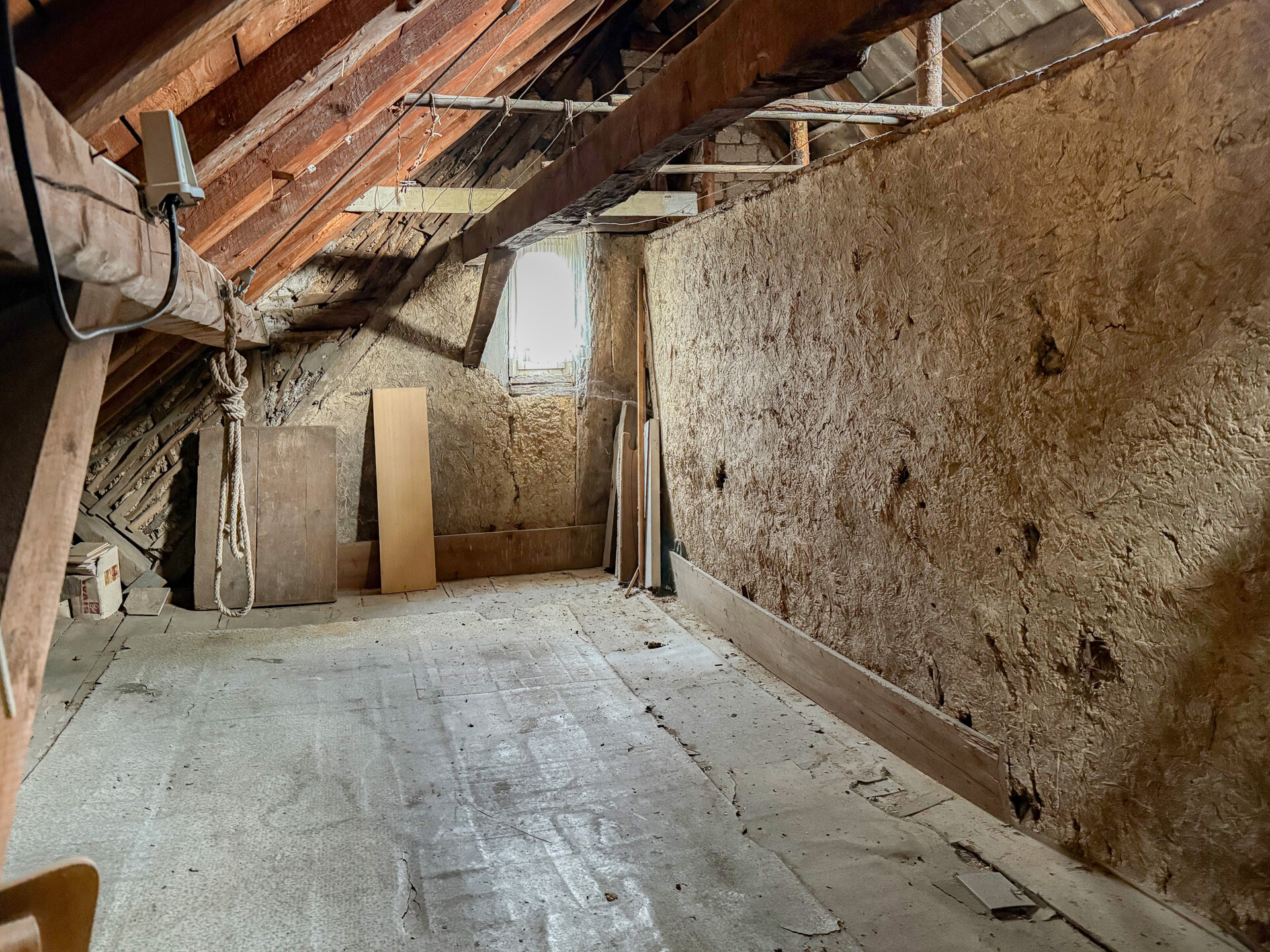 • Dieses Angebot umfasst ein Wohnhaus aus ca. 1900 sowie ein ehem. Nebengebäude, das um 1970 zu Wohnraum umgebaut wurde. Beide Gebäude stehen auf einem ca. 382 m² großen Grundstück und könne wieder verbunden werden, wodurch flexible Möglichkeiten entstehen. Der linke, ältere Teil erstreckt sich über 2 Etagen. Im EG befinden sich der Eingangsbereich mit ehemaligen Küchenanschlüssen, ein Wohnzimmer, ein Hauswirtschaftsraum sowie das frühere Bad. Über eine Luke im Eingangsbereich ist ein Erdkellerraum zugänglich. Im OG liegen ein Durchgangszimmer und ein Schlafzimmer, der Dachboden ist über eine Treppe erreichbar. Die Deckenhöhen sind überwiegend niedrig (ca. 1,91–2,06 m, Balken noch niedriger). Eine frühere Verbindung zum zweiten Haustrakt im OG wurde verschlossen, kann jedoch wieder geöffnet werden. Der rechte, jüngere Gebäudeteil verfügt ebenfalls über 2 Etagen. Im EG befinden sich ein Duschbad und die Küche. Das OG bietet ein großes Wohnzimmer, ein Schlafzimmer mit Anschlussmöglichkeit zum Altbau sowie ein Kinderzimmer mit Balkon. Der Dachboden dient als Stauraum. Ein Kellerraum wird als Werkstatt genutzt. Im hinteren Grundstücksbereich befindet sich ein Garten mit Gastank zur Beheizung des neueren Hausteils, der derzeit nur über den Außenbereich erreichbar ist.