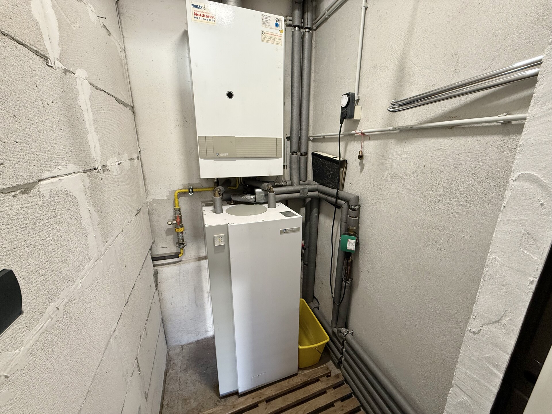 Beheizung: (alt) Nachtspeicherheizung (ca. 1970), (neu) Gas-Zentralheizung Junkers (2000);