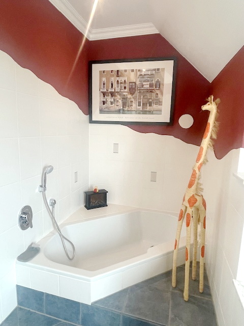 Auf gleicher Etage gibt es weiterhin ein schönes Bad mit Eckbadewanne und Dusche.
