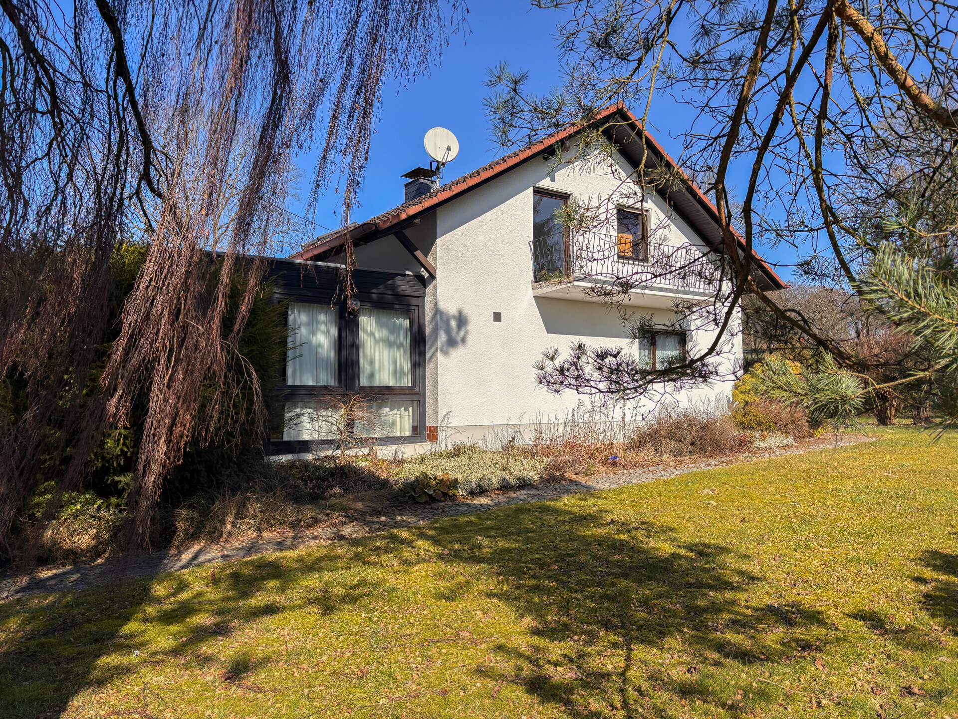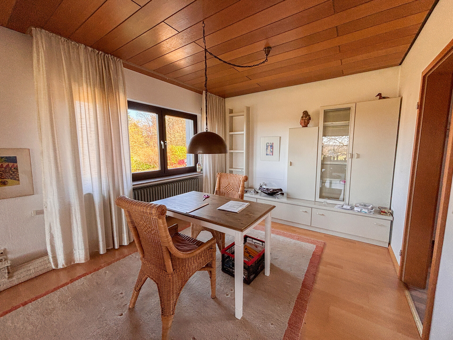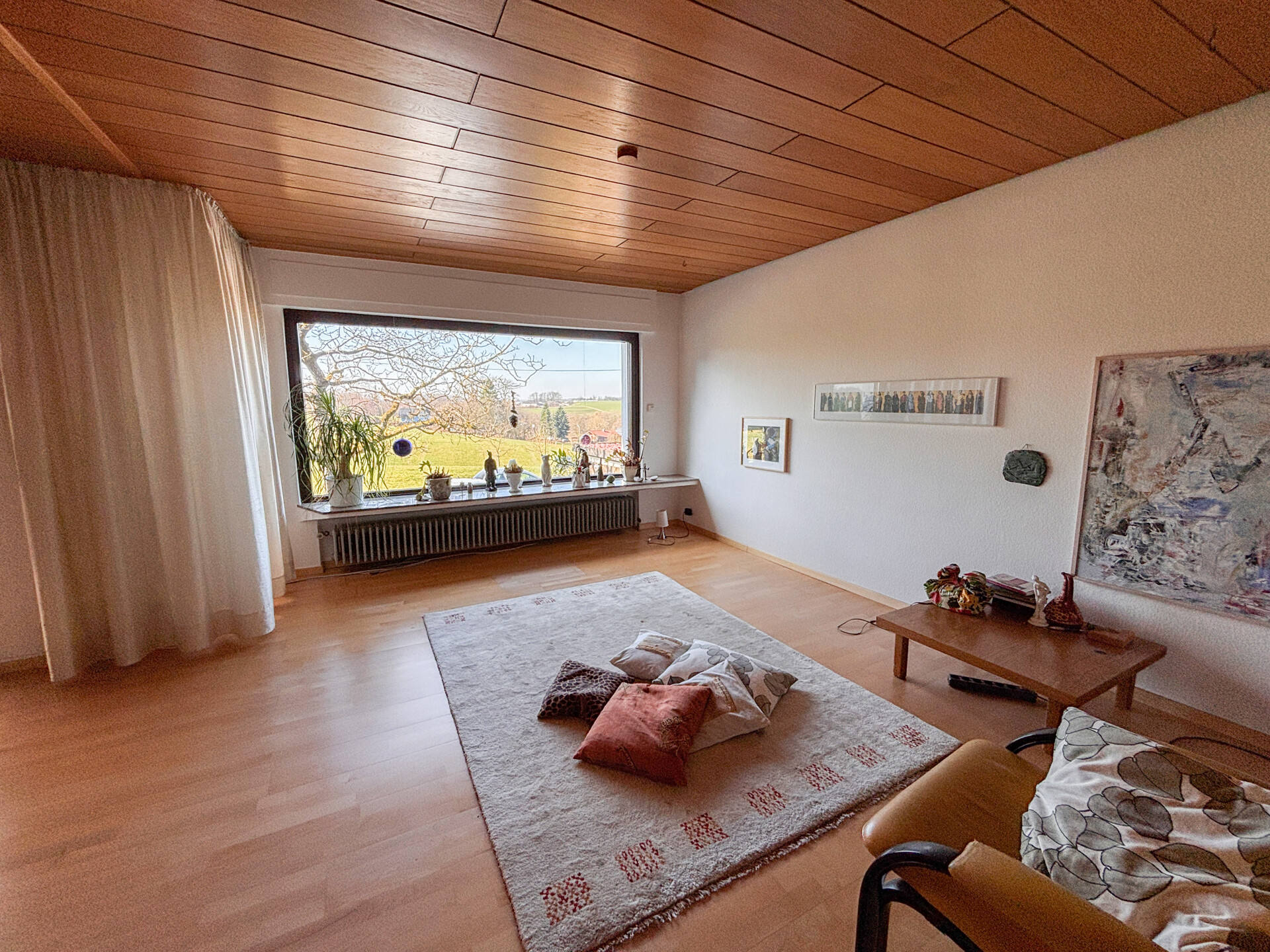 Dieses massiv erbaute und gepflegte Einfamilienhaus aus dem Jahr 1966 bietet auf zwei Etagen eine Wohnfläche von ca. 113 m². Das großzügige Grundstück mit etwa 3.964 m² teilt sich in 2 Flurstücke auf und eröffnet zahlreiche Möglichkeiten zur individuellen Gestaltung und lädt mit seiner herrlichen Aussicht zum Verweilen ein. Im Erdgeschoss erwartet Sie ein durchdachter Grundriss mit einem Gäste-WC, einem Badezimmer sowie einem Arbeitszimmer, individuell als Gästezimmer nutzbar. Das Herzstück dieser Etage bildet der großzügige Wohn- und Essbereich mit Kaminofen. Von hier aus gelangen Sie direkt in den Wintergarten. Ergänzt wird das Erdgeschoss durch eine Küche. Das Dachgeschoss bietet drei Schlafzimmer, ein separates WC und ein Tageslichtbad. Die beiden Schlafzimmer verfügen jeweils über einen eigenen Balkon mit Blick in den Garten, wobei eines der Zimmer zusätzlich mit einer praktischen Ankleide ausgestattet ist. Das Haus ist unterkellert und bietet damit zusätzlichen Stauraum. Hier befinden sich eine gemütliche Kellerbar, eine Waschküche, ein Vorratsraum sowie der Heizungsraum. Zudem besteht ein direkter Zugang zur Garage.