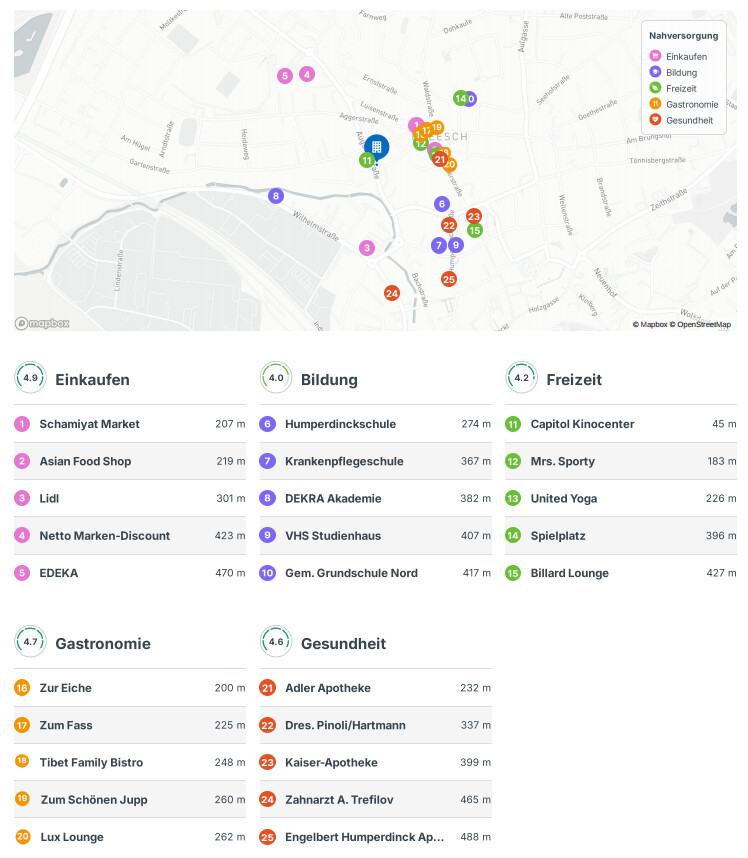 Die Umgebung zeichnet sich durch eine gut entwickelte Infrastruktur aus. In unmittelbarer Nähe zur Immobilie finden sich diverse Einkaufsmöglichkeiten, gastronomische Angebote und kulturelle Einrichtungen, die keine Wünsche offenlassen. Die Nähe zum Stadtzentrum von Siegburg sorgt für ein lebendiges Umfeld und stellt sicher, dass alle wichtigen Einrichtungen des täglichen Bedarfs leicht erreichbar sind.