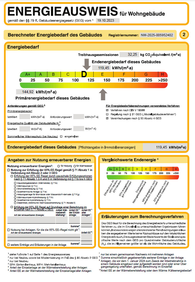 - Endenergiebedarf: 119,45 kWh/(m²*a)