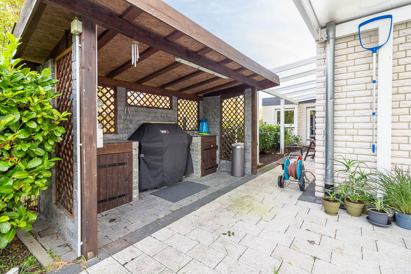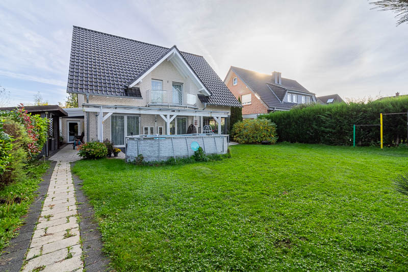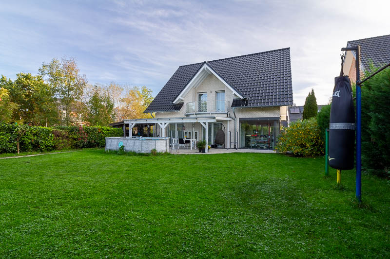 Draußen setzt sich die Eleganz des Innenbereiches fort, denn mit einem liebevoll gepflegten, eingewachsenen Garten, einem Grillplatz und viel Platz wird selbst die größere Familie für jeden das ideale Sommer-Sonnen-Plätzchen finden. Die große Doppelgarage und zwei Stellplätze machen das Angebot dann auch für Autoliebhaber mit vielen Gästen beliebt.