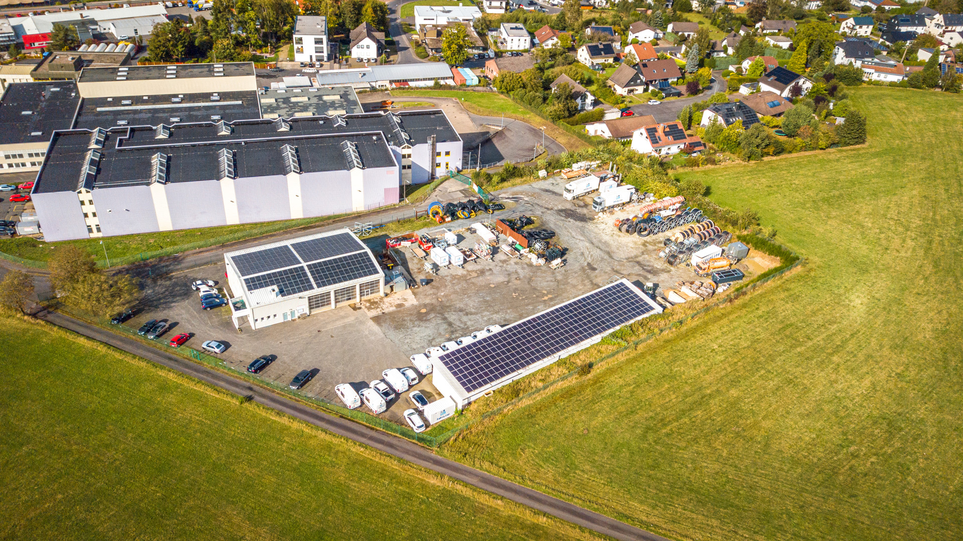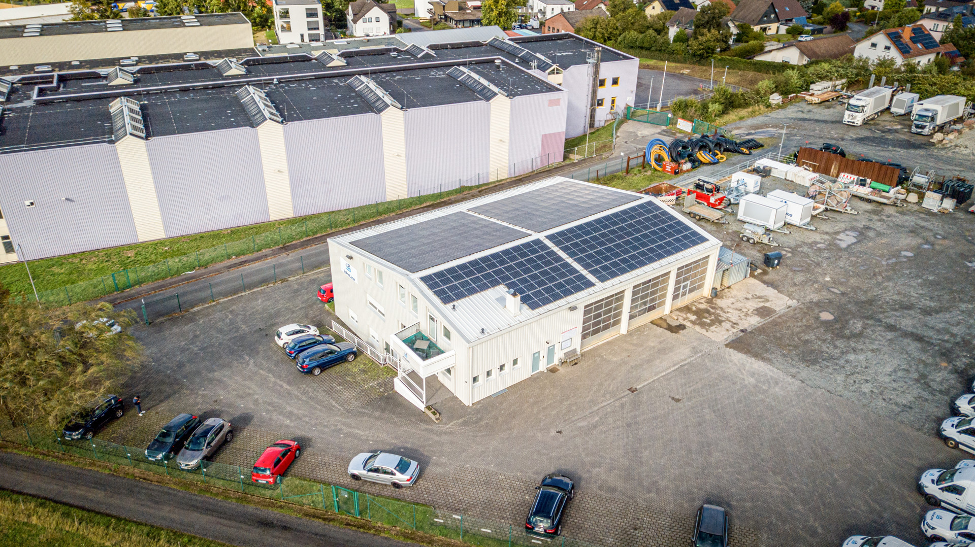 Großer Gewerbekomplex mit Bürogebäude, Werkstatt-/Halle, Freifläche und PV-Anlage!