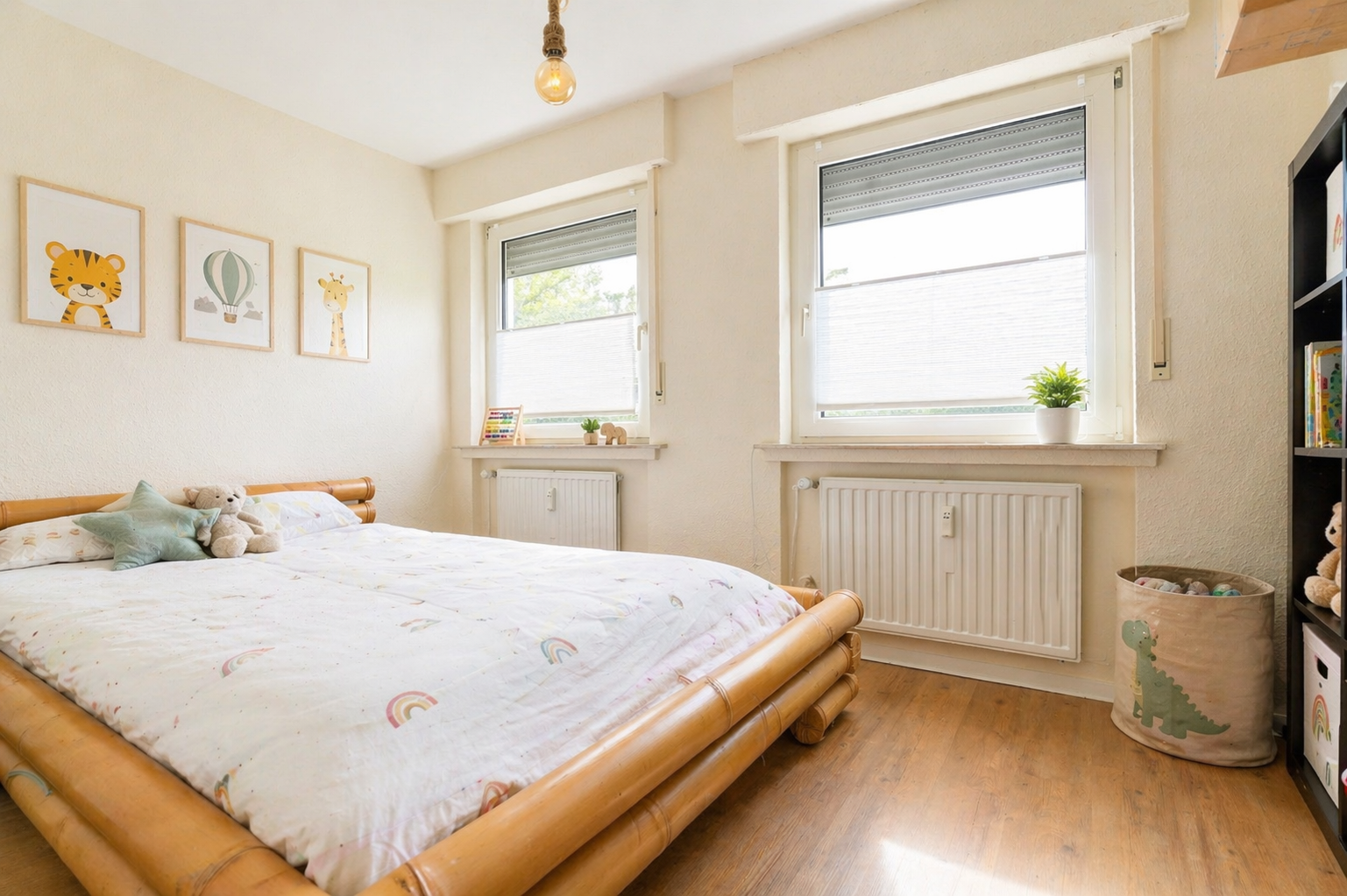 Rollläden: In allen Räumen vorhanden, manuell bedienbar