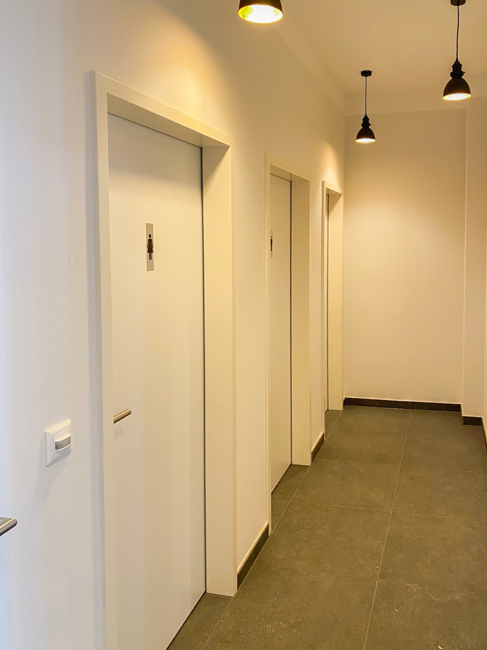 Das angrenzende Büro bietet ausreichend Platz für Verwaltung, Personalorganisation oder Kundenempfang. Das Angebot umfasst ebenfalls einen Sanitärbereich, WC- sowie Waschmöglichkeiten. -