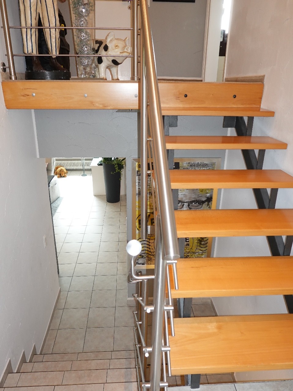 Geschosstreppen: Zum OG Stahlkonstruktion mit Echtholzstufen, ansonsten massiv mit Fliesenbelag