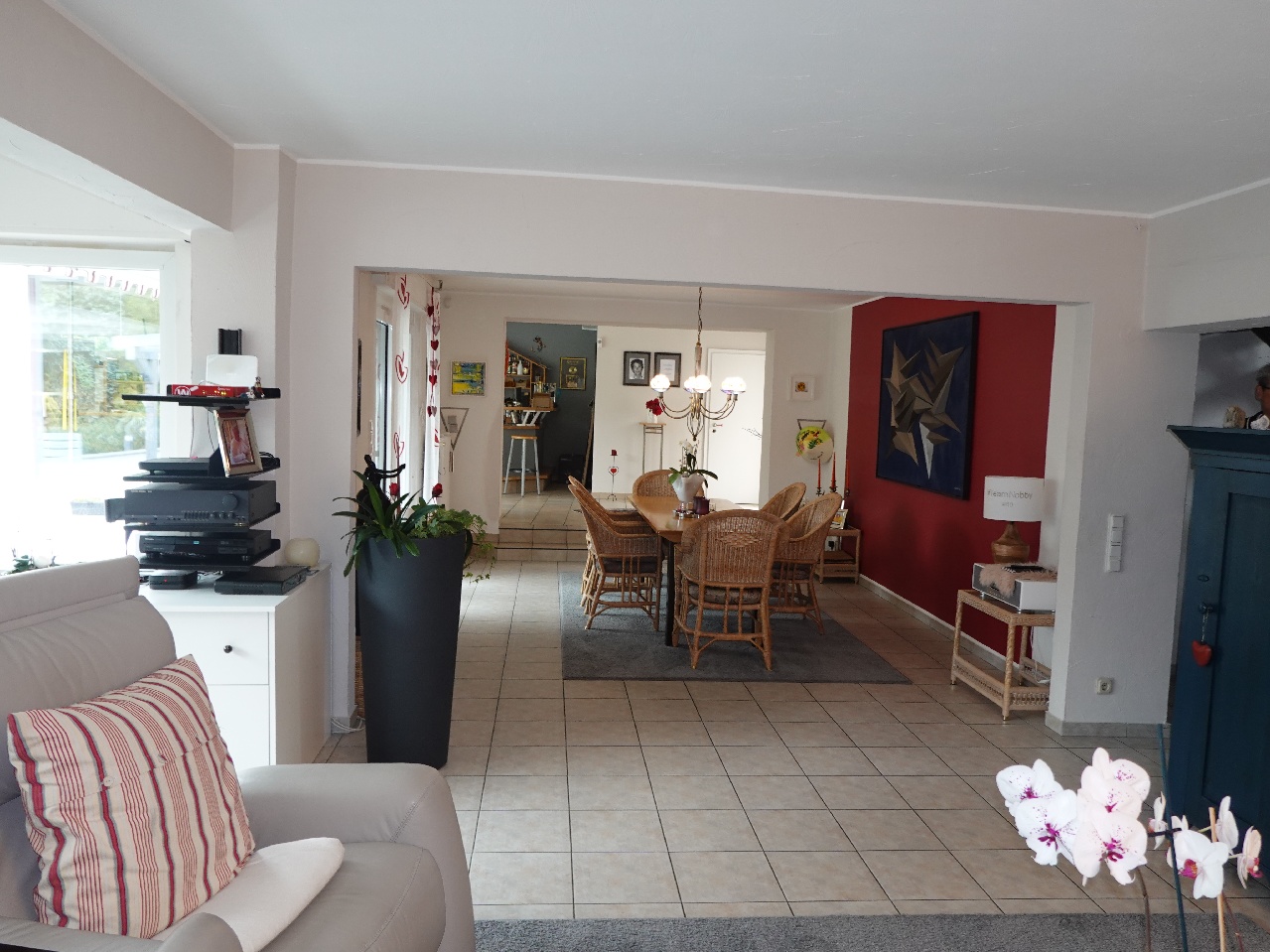 Diese umfänglichen Nutzungsmöglichkeiten des Hauses sind auf den ersten Blick nicht zu erwarten und suchen einen neuen Eigentümer mit Geschmack zur Großzügigkeit. Abschließen ist noch zu erwähnen, dass die übergroße Garage mit zusätzlichem Geräteraum ebenfalls vom Haus aus zu erreichen ist und alle Einkäufe auf direktem Wege ins Haus gebracht werden können.