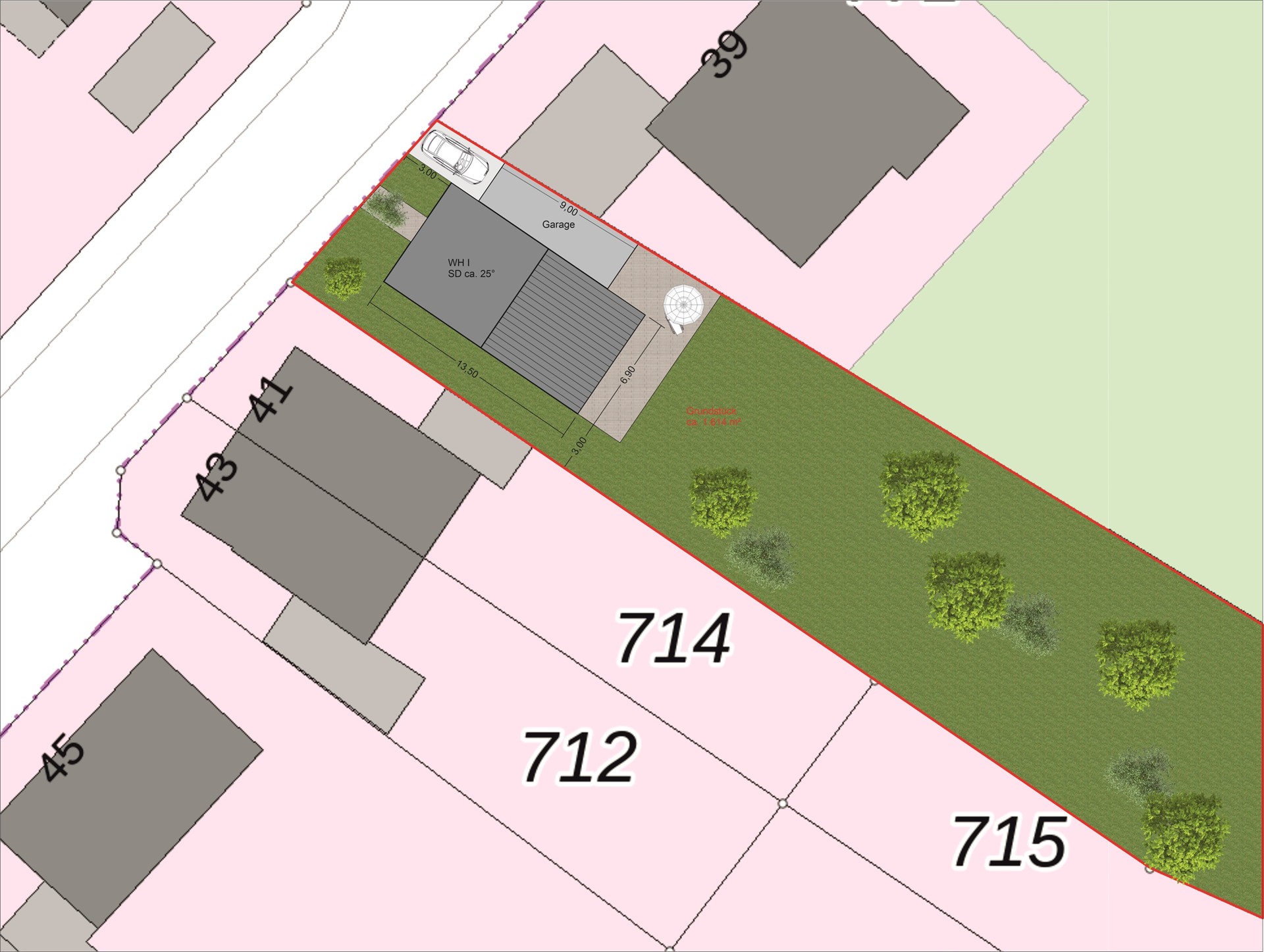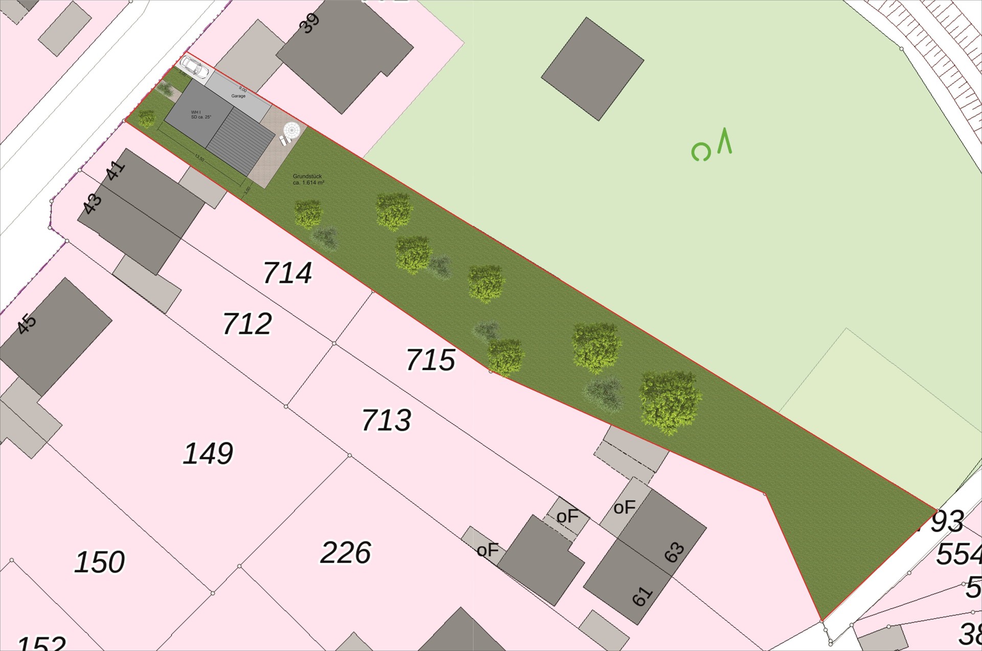 Das angebotene Grundstück befindet sich in einer äußerst ruhigen Lage am Ende einer Sackgasse, eingebettet in ein charmantes Wohngebiet zwischen zwei bereits bestehenden Einfamilienhäusern.
