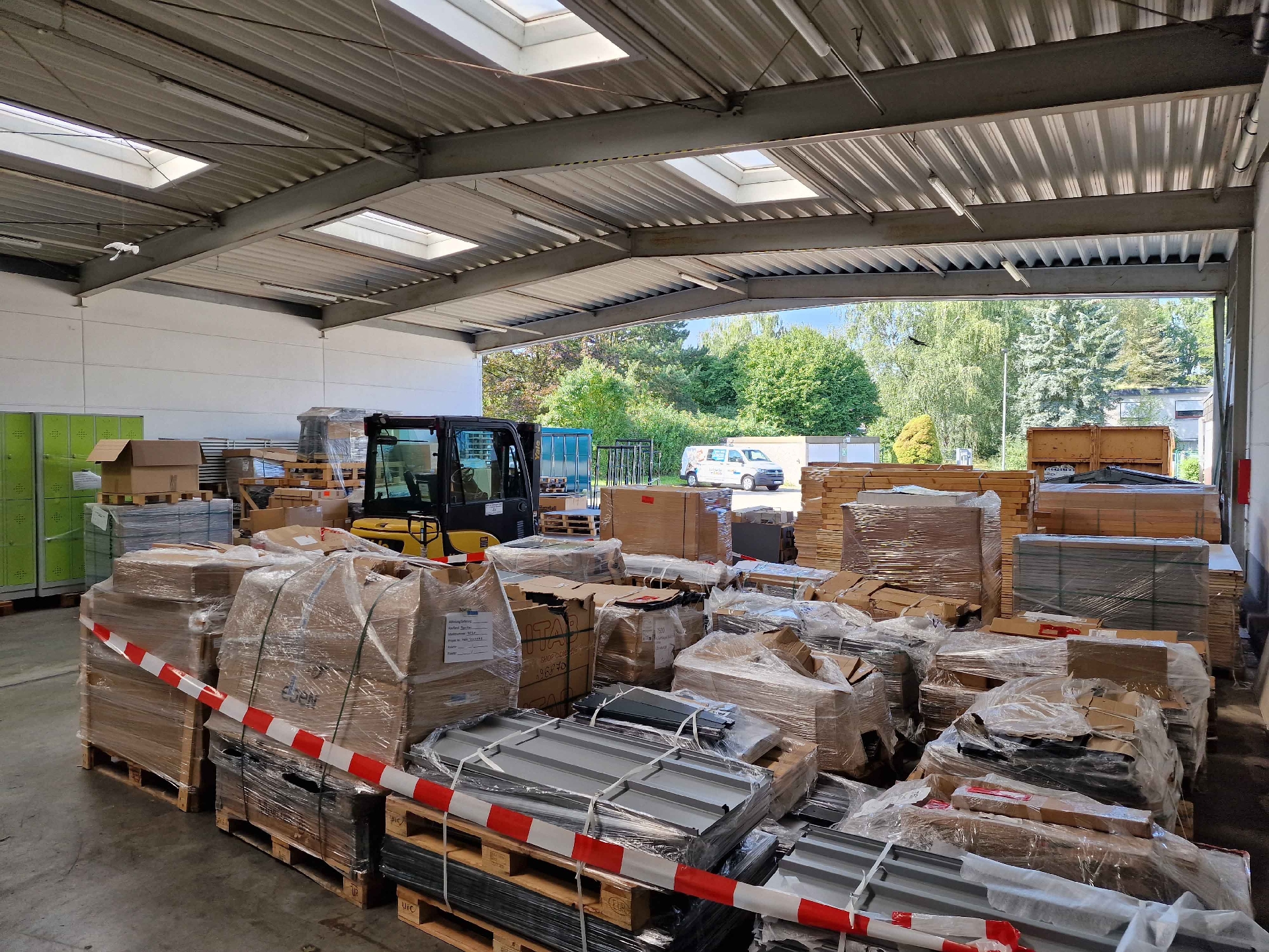 Angrenzend befinden sich die Büro- und Nebenflächen mit einer Größe von 418 m². Im Erdgeschoss befinden sich ausschließlich Büroräume. Durch einen Leitungswasserschaden werden diese zurzeit komplett renoviert.