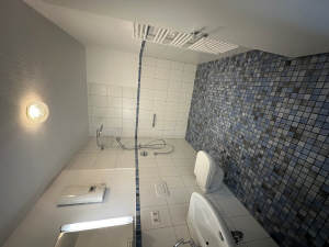 Neben einem hellen und offenen Wohnraum umfasst die Wohnung noch ein Schlafzimmer, einen Küchenbereich, einen Abstellraum, ein barrierefreies Bad mit großzügiger, bodengleicher Dusche und den Flur-/Dielenbereich. Das Haus ist auch für Rollstuhlfahrer und Menschen mit Gehbehinderung geeignet. Großzügige Verglasungen lassen die Sonne in die Wohnung scheinen. Weitere Ausstattungsmerkmale: Vorgerichtet für Hausnotruf, TV-, Internet- und Telefonanschlüsse vorhanden, umfangreiche Elektroausstattung, Gegensprechanlage mit Videofunktion, Fußbodenheizung, Aufzug im Haus.